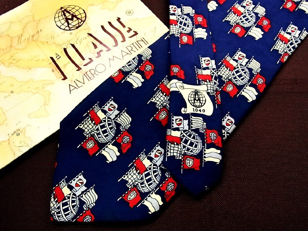 ♪5838D♪状態並品【地球 世界の旗 柄】プリマクラッセ【PRIMA CLASSE】ネクタイ