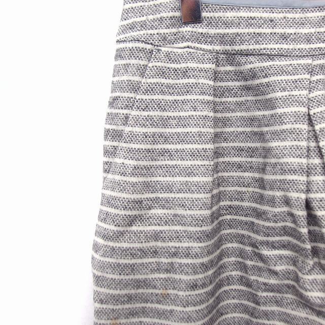 ナチュラルビューティーベーシック NATURAL BEAUTY BASIC スカート ボーダー 台形 ひざ下丈 ウール混 M グレー /FT14 レディース