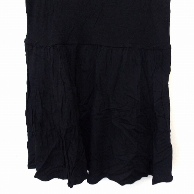 ユニクロ UNIQLO ワンピース 切替 Uネック ノースリーブ ひざ丈 ギャザースカート S ブラック 黒 /FT35 レディース