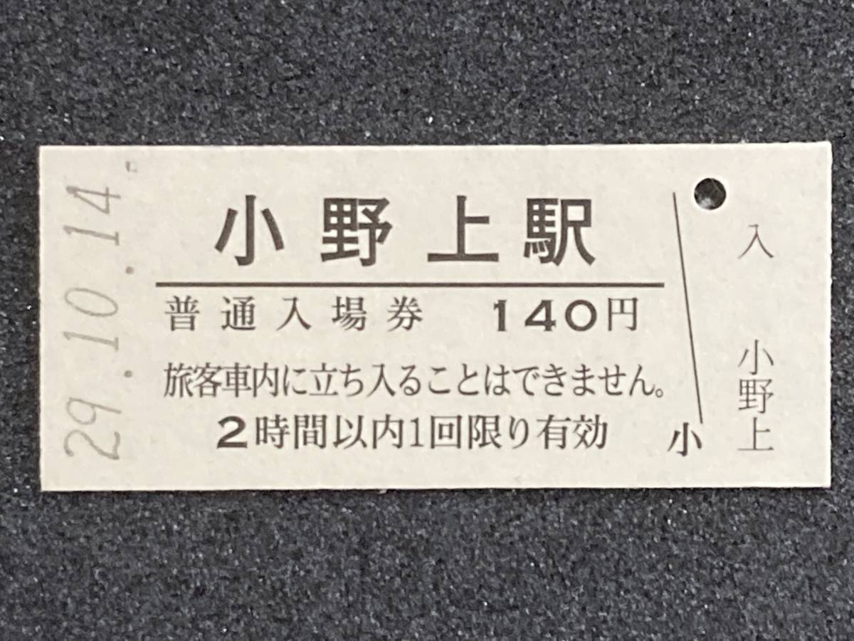 JR東日本 上越線 小野上駅 140円 硬券入場券 1枚 日付29年10月14日