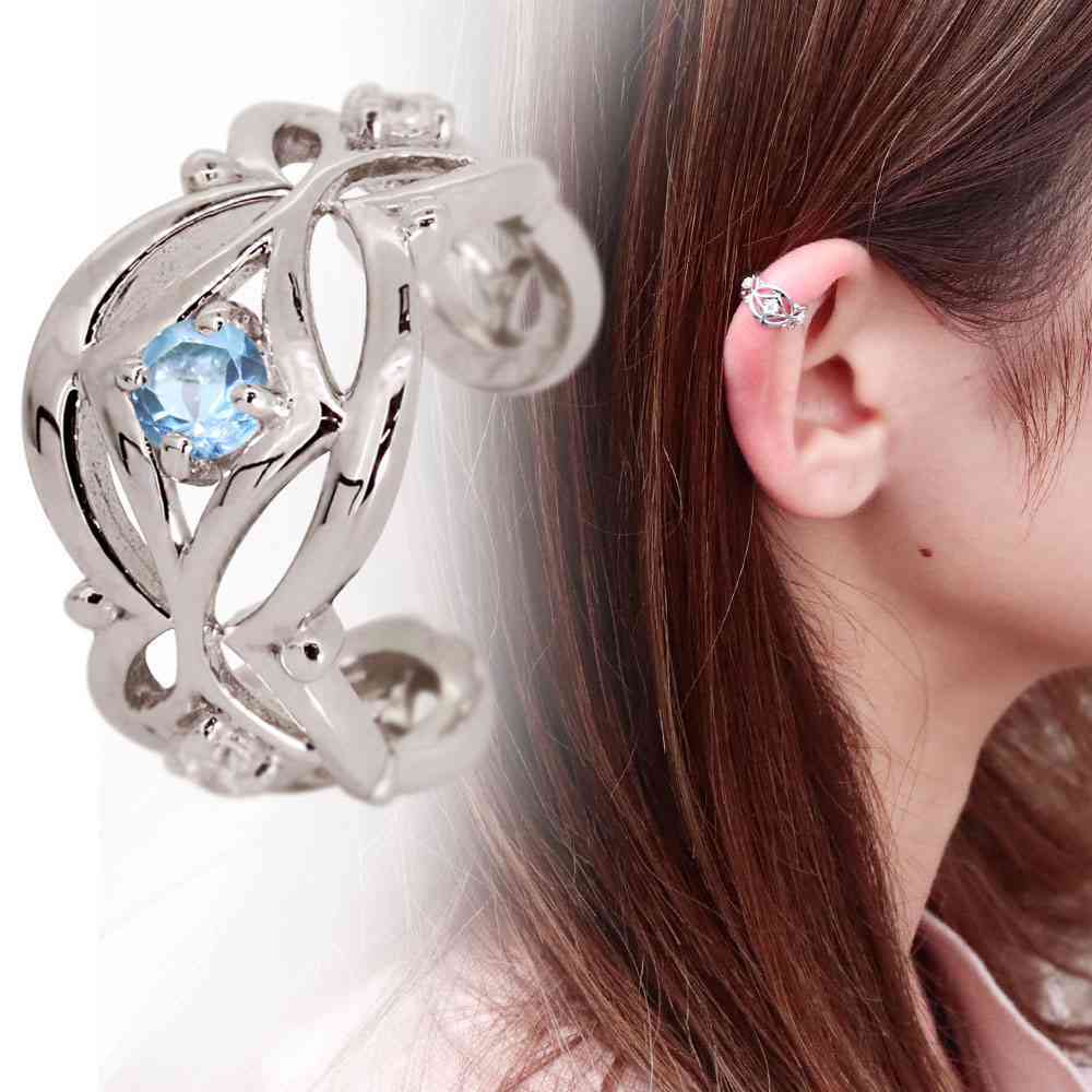 11月誕生石ブルートパーズを使用したシルバー製の、レディースイヤーカフです。