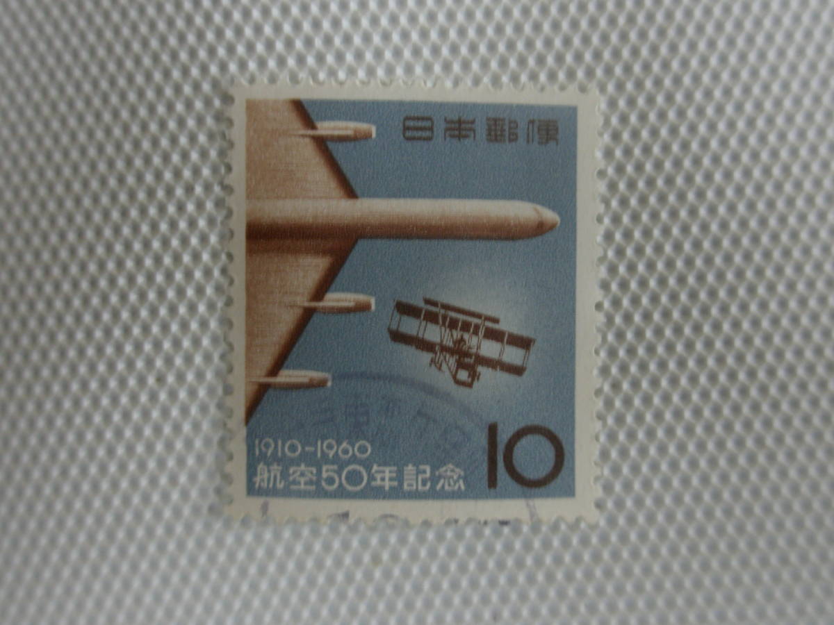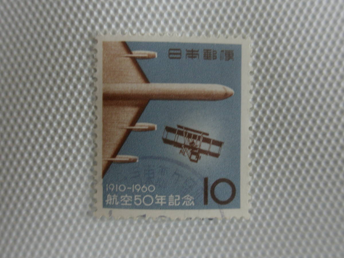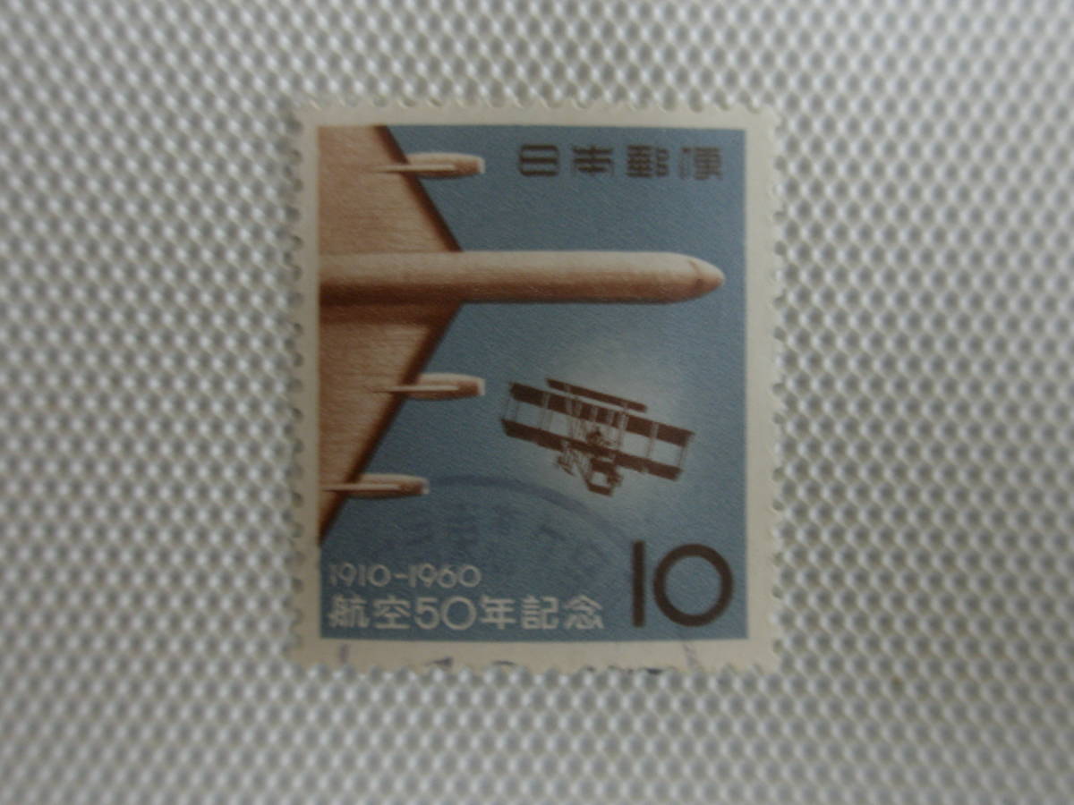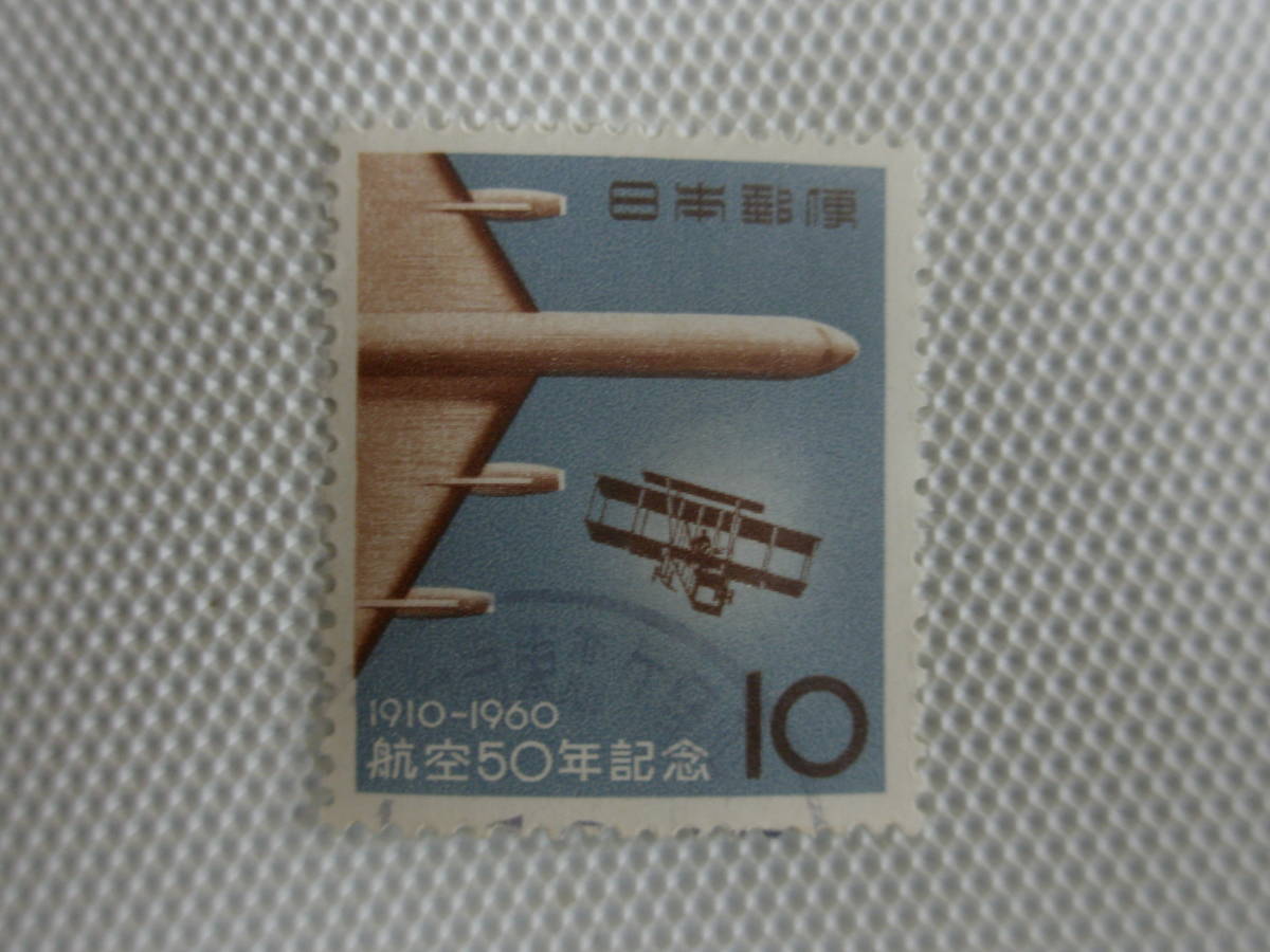 航空50年記念 1960.9.20 最初のファルマン機と1960年当時のジェット機 10円切手 単片 使用済