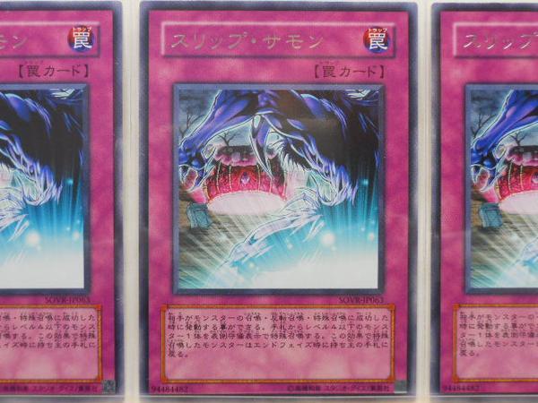 遊戯王スリップ・サモン(SOVR-JP063)レア3枚セットです。 開封後すぐスリーブに入れて保管していた未使用品です。 初期傷、スレ、そりなどの細かい点を気にされる場合は入札をお控えください。 ノークレーム、ノーリターンでお願いいたします。 |