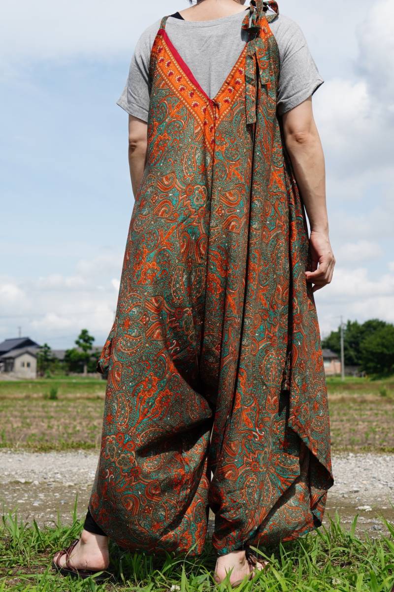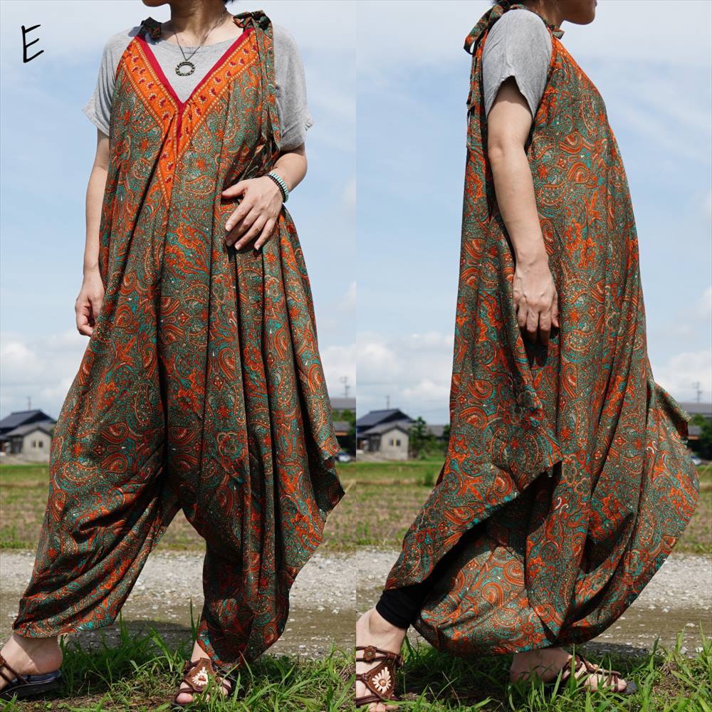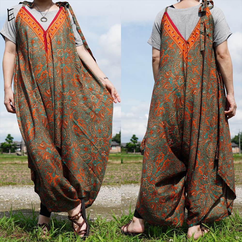 ★エスニック シルク サロペット オールインワン 送料込★新品 送料込E★アジアン ビスコース素材 シルク フリーサイズ