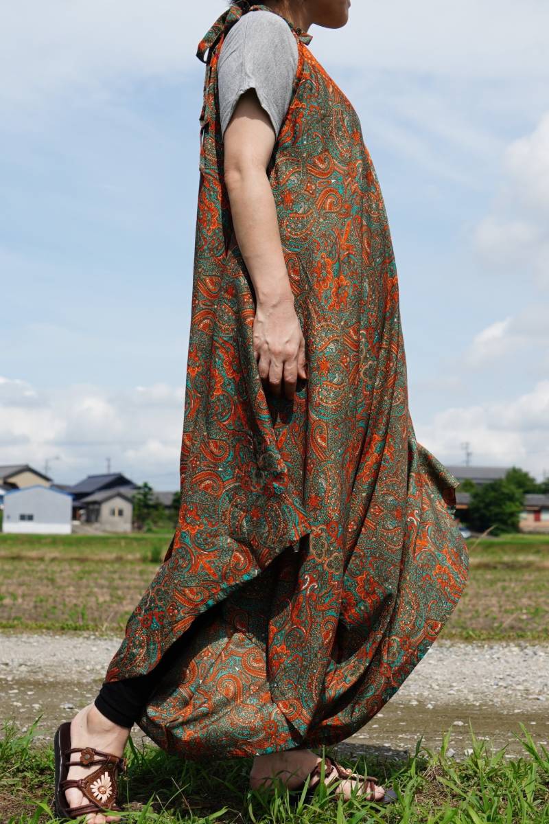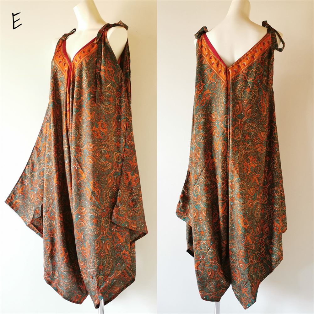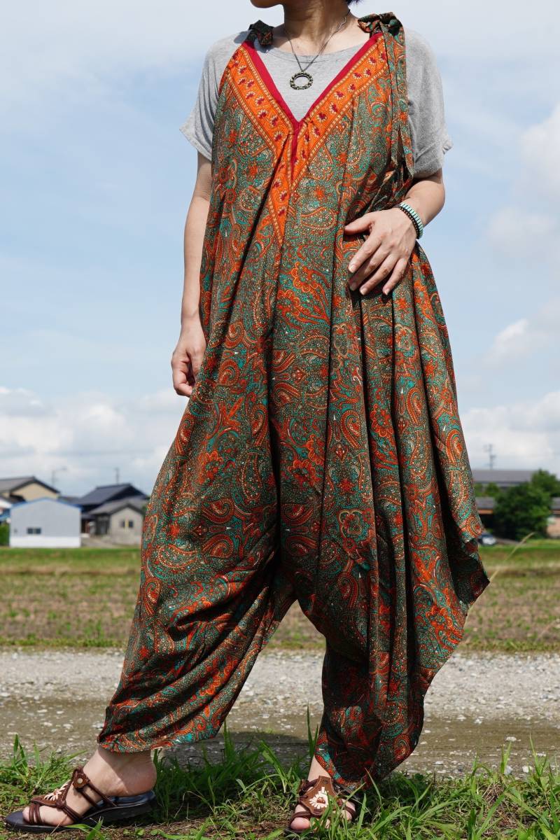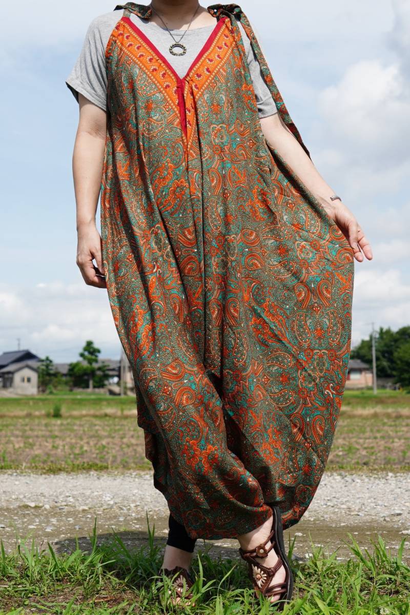 ★エスニック シルク サロペット オールインワン 送料込★新品 送料込E★アジアン ビスコース素材 シルク フリーサイズ