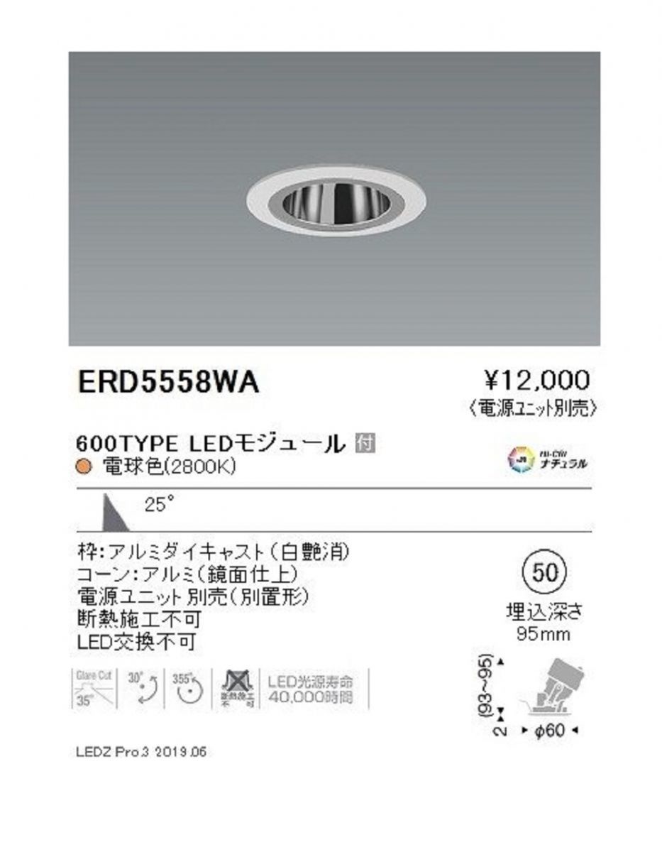 LEDダウンライト 電源ユニット別売 電球色 ERD5558WA