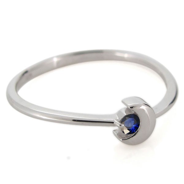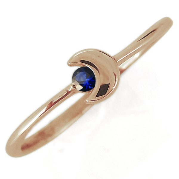 指輪 レディース シンプル 月モチーフ サファイア 10金 リング 華奢 一粒