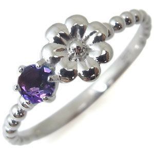フラワー リング アメジスト 18金 指輪 花柄 ピンキーリング ファランジリング
