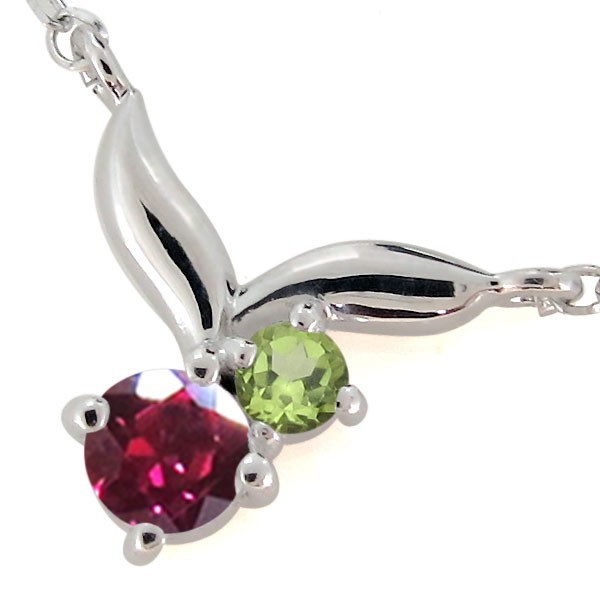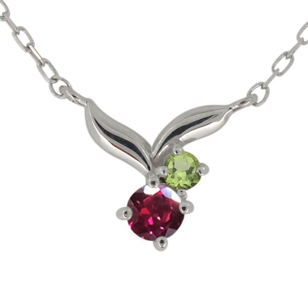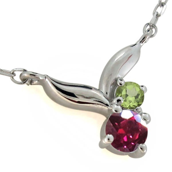 7月誕生石ルビーを使用したプラチナ製の、リーフ(葉っぱ)モチーフレディースネックレス(ペンダント)です。