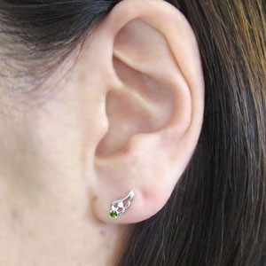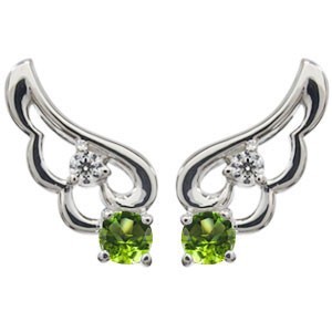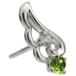 ペリドット ピアス 天使の羽 一粒 ピアス