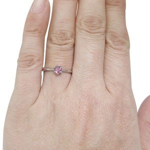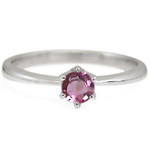 10月誕生石ピンクトルマリンを一粒使用した、シンプルデザインの18金製リング(指輪)です。