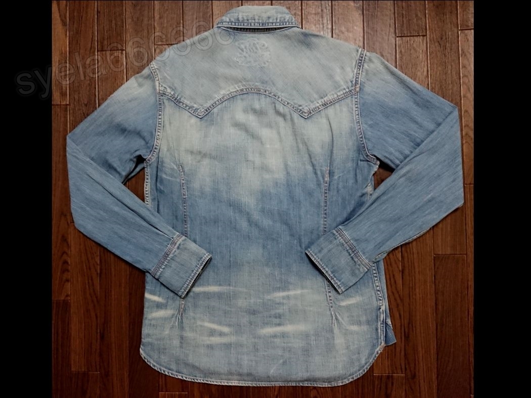 ○2014年発売品。 オリジナルの生地を使用したデニムシャツ。 シンプルな表情の中に細かく計算された、加工、パターンが最大の特徴。 肌寒い季節にはインナーとして、暖かい季節にはカットソーの上からサラッと羽織れるよう配慮されています。 スナップボタンは、ブラックパールボタンを採用し、全体的に引き締まった高級感のある雰囲気を放っています。 ◎強い色落ち、破れ、染みなど目立つダメージはありません。 襟回り、袖口に黄ばみもありません。 二重梱包で発送いたします(ビニール等 & 紙袋 or ダンボール箱) ◎良品。 目立つダメージ無く、コンディションは比較的良好な部類ですが、古着・加工にご理解の無い方、多少の使用感等極端に状態を気になさる方は入札をご遠慮ください。