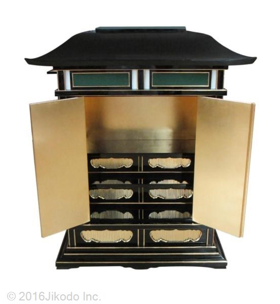 商品名 黒塗り ひな壇付き 大型幅広春日厨子
