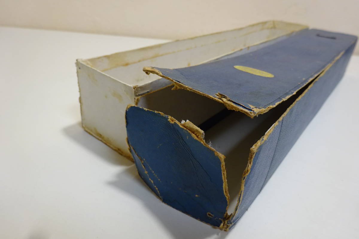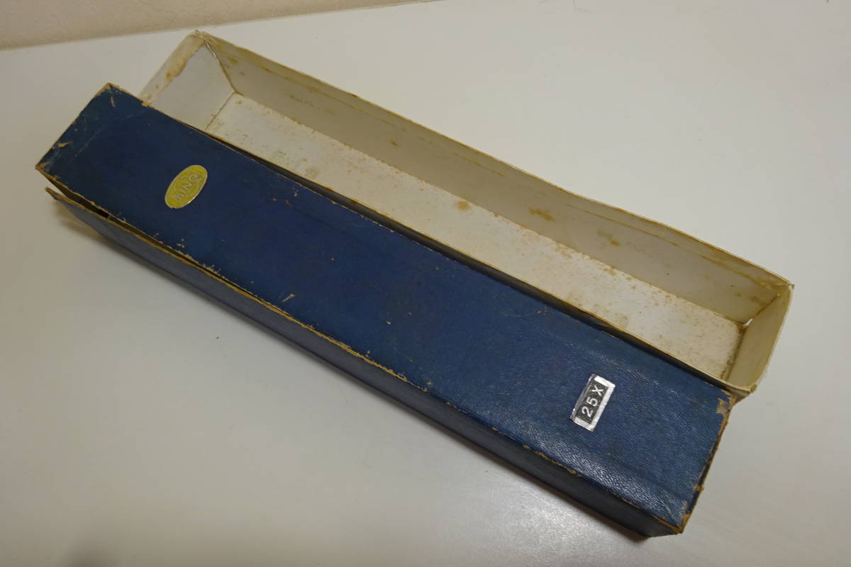 箱、本体含めてクリーニング済ですが黄ばみ錆、箱は破もあります。