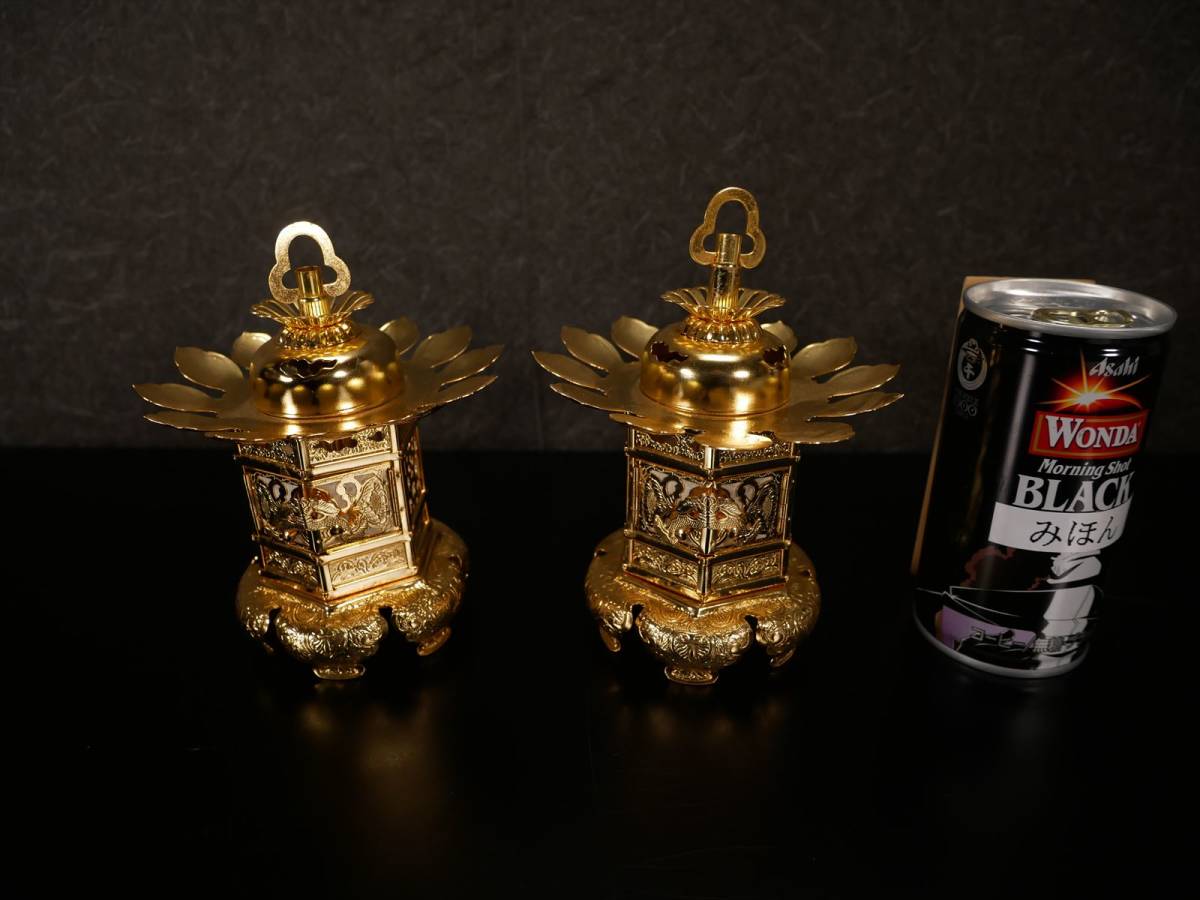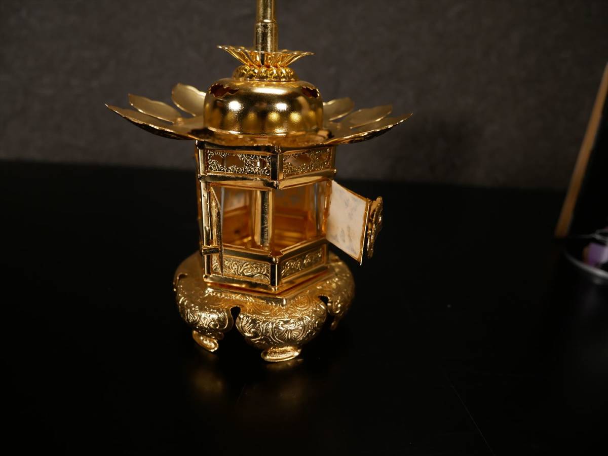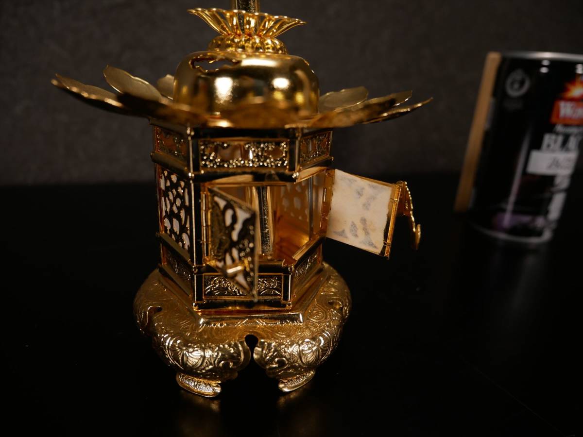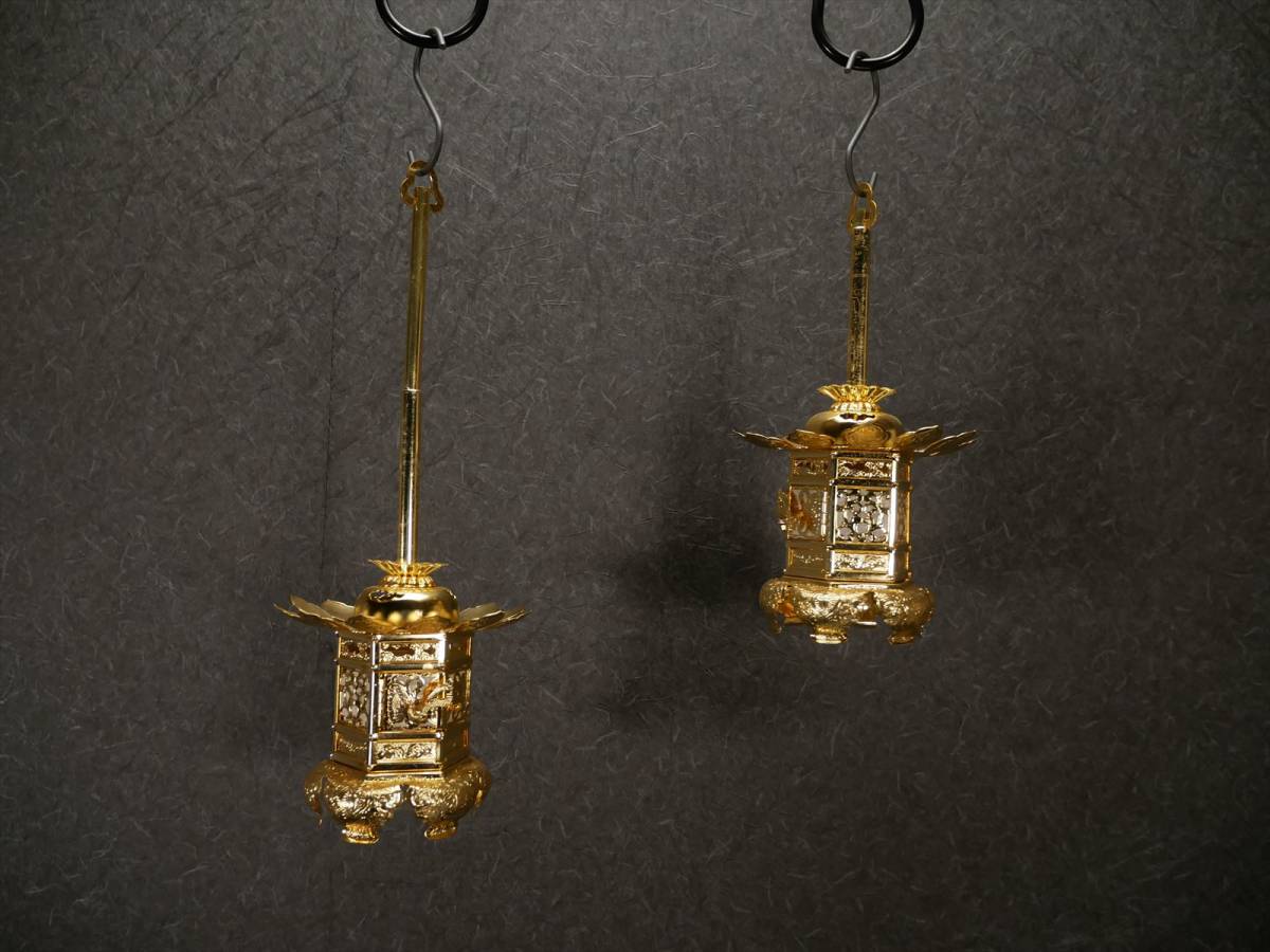 収集品 吊灯籠 伸縮パイプ付 六角猫足 金色