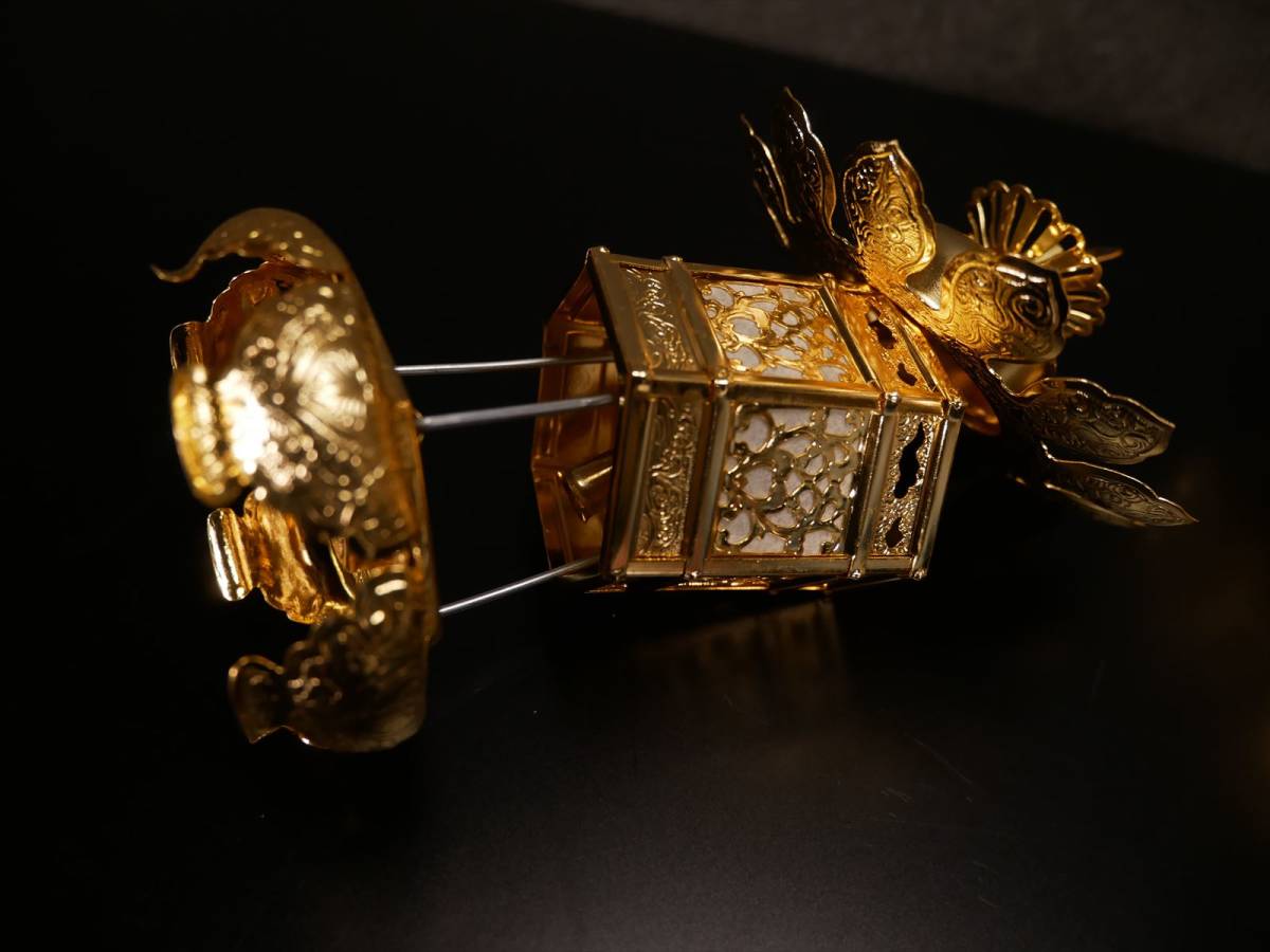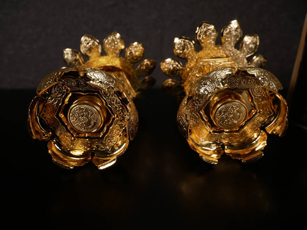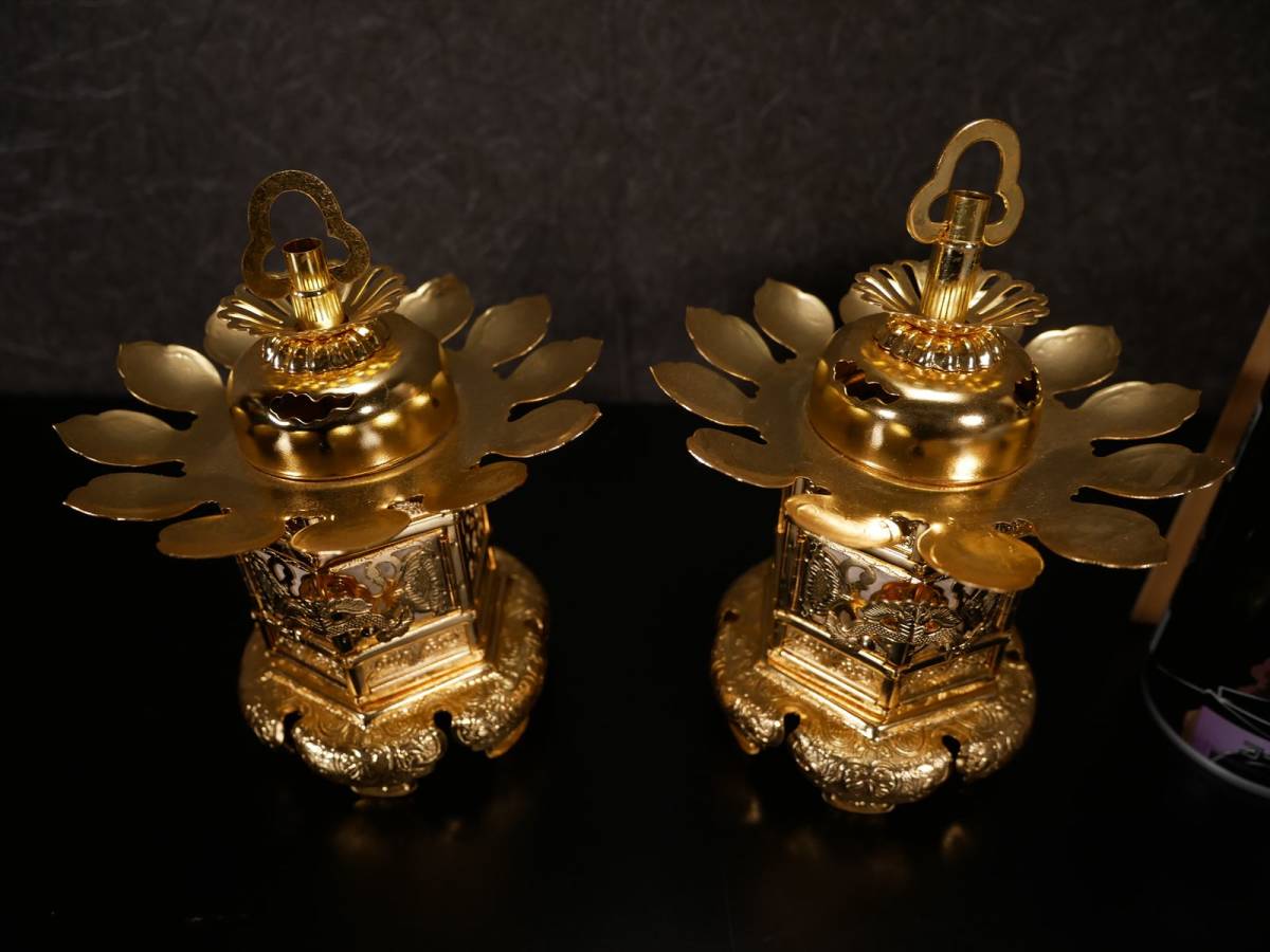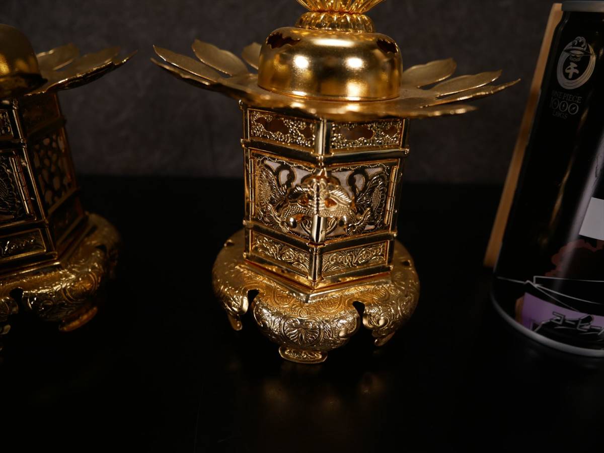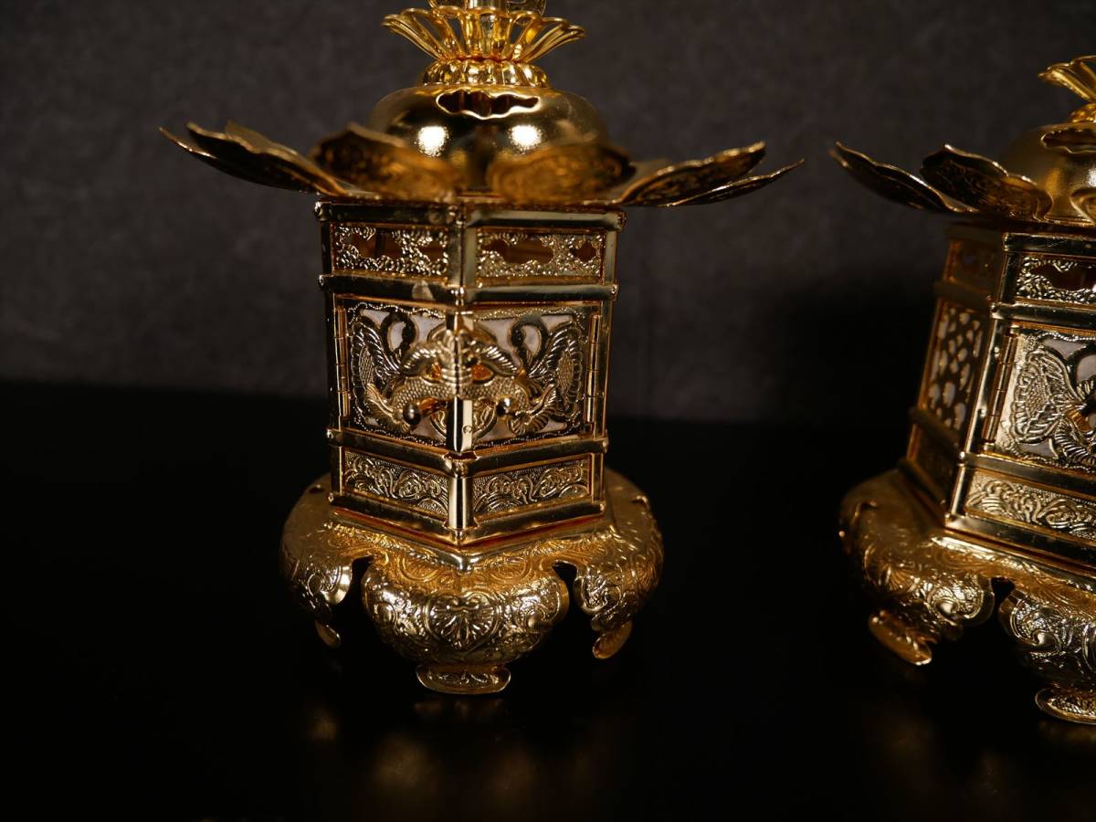 収集品 吊灯籠 伸縮パイプ付 六角猫足 金色