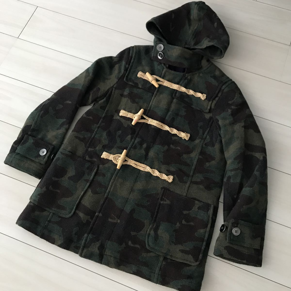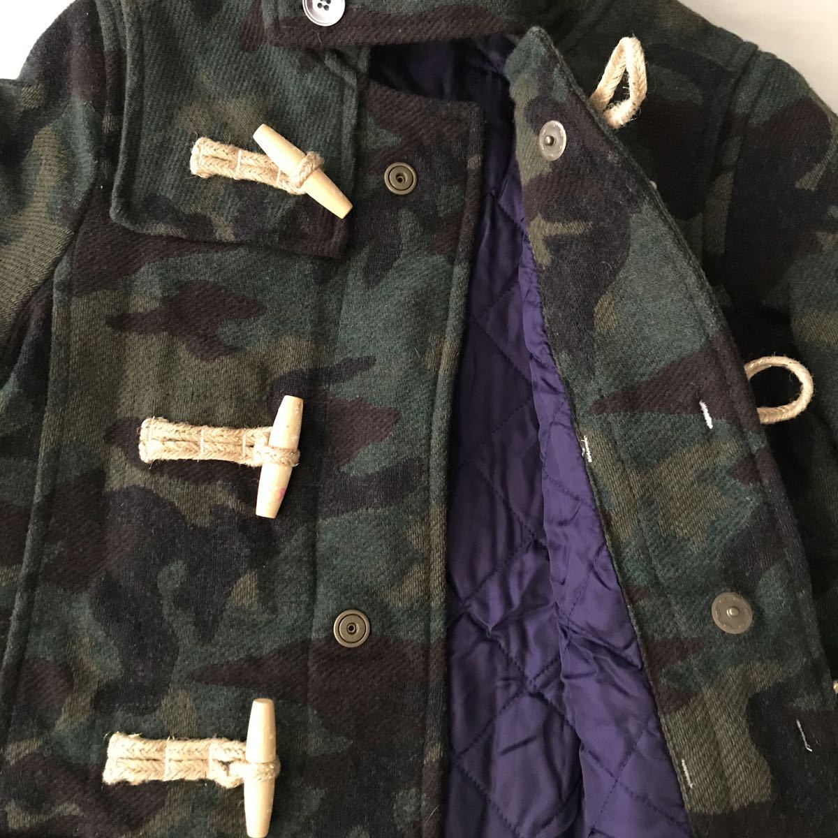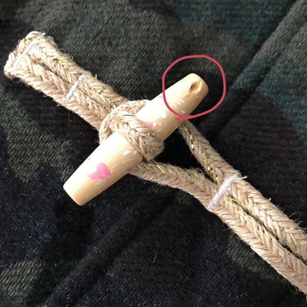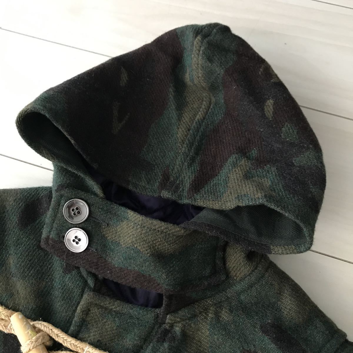こちらはお出かけの時に着用の数回ユーズドです。特に目立つ汚れ等はありませんが、真ん中の木のボタンに欠けている所がありました。ボタンをくるっと回して内側にすれば見えませんが、画像にて必ず確認して下さい。また、自宅保管なのでご了承下さい。