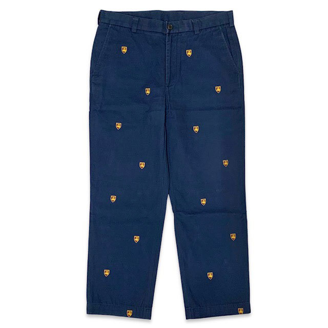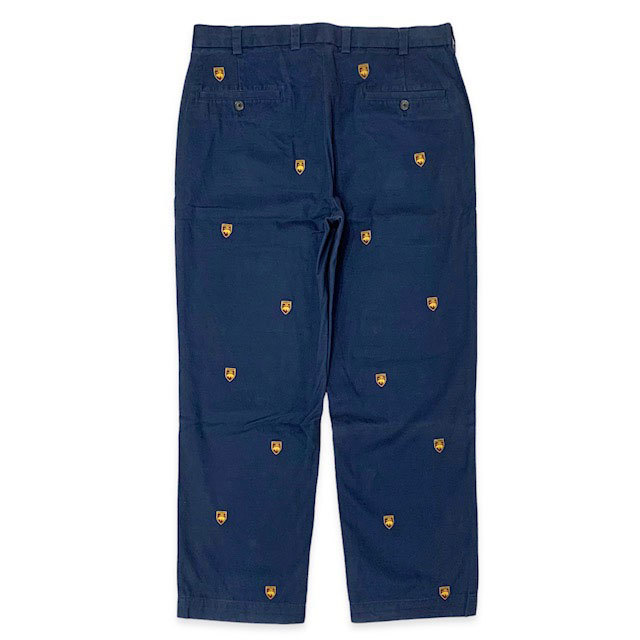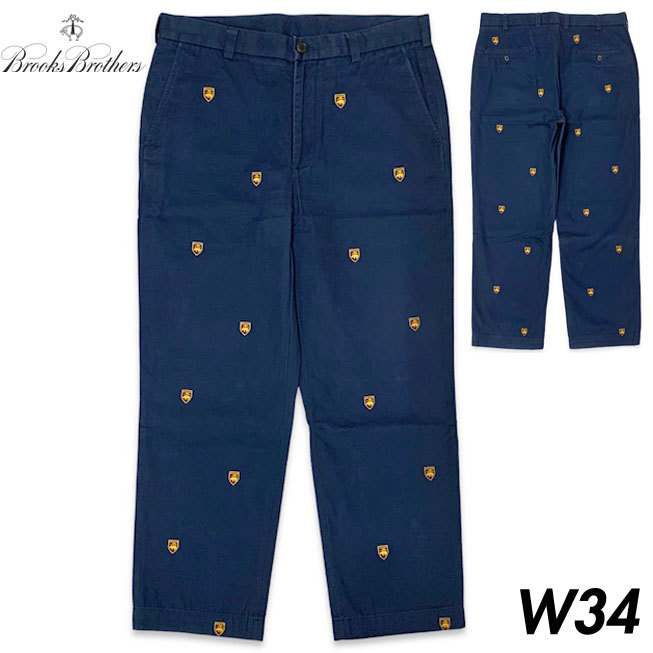 希少■ BROOKS BROTHERS (ブルックス ブラザーズ) 346 エンブレム ロゴ刺繍 総柄 チノパン コットンパンツ 紺ネイビー W34 アメカジ 古着