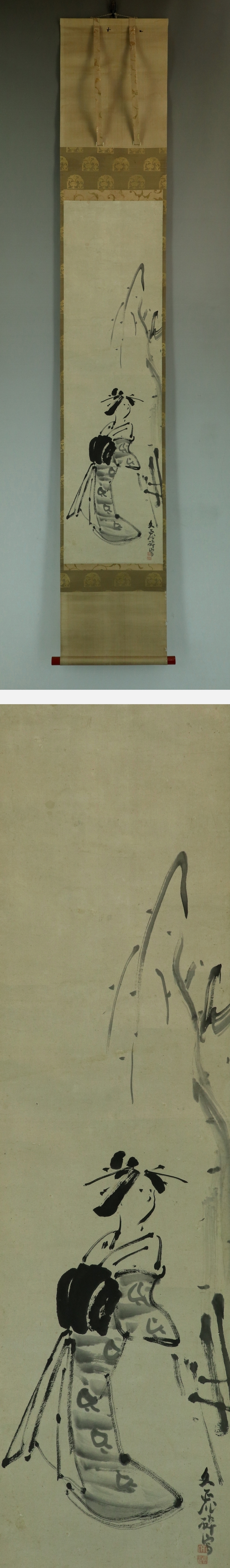 | №2210050 希少【真作】甲賀文麗【柳下美人図】◆紙本◆合箱◆掛軸 | |