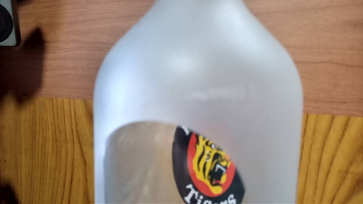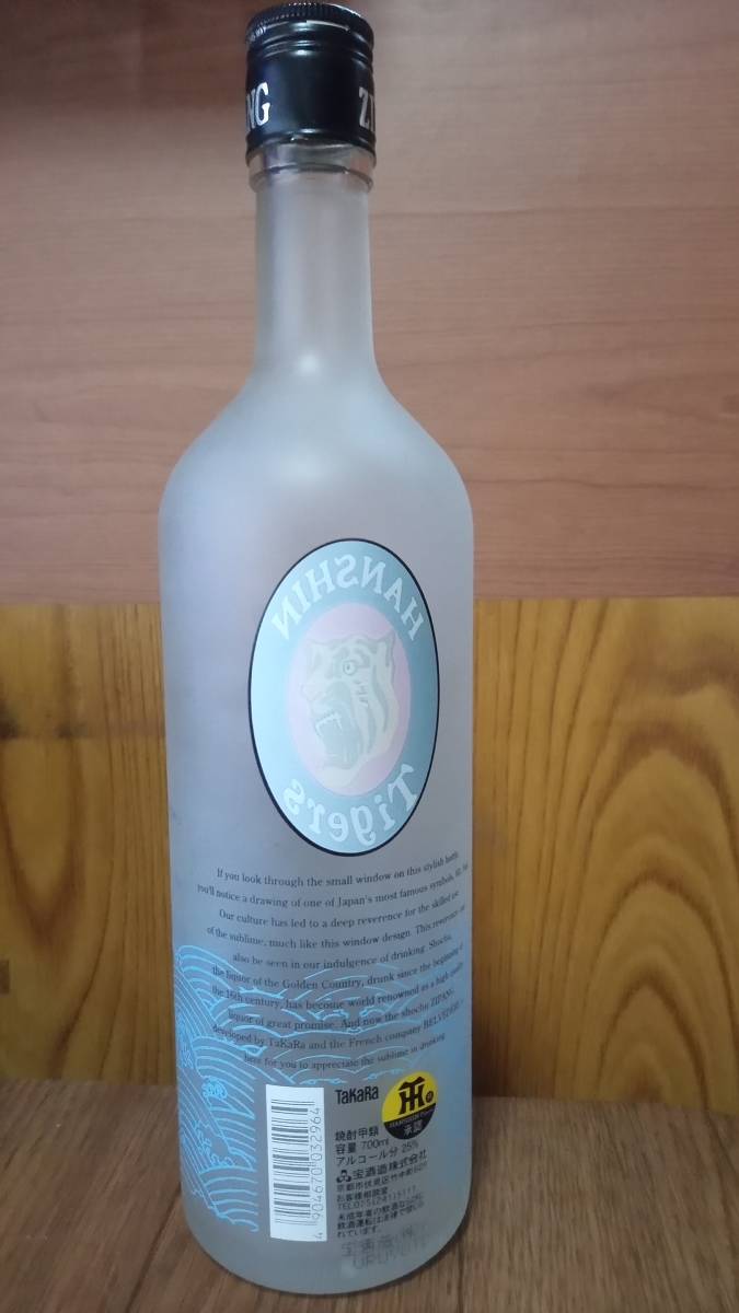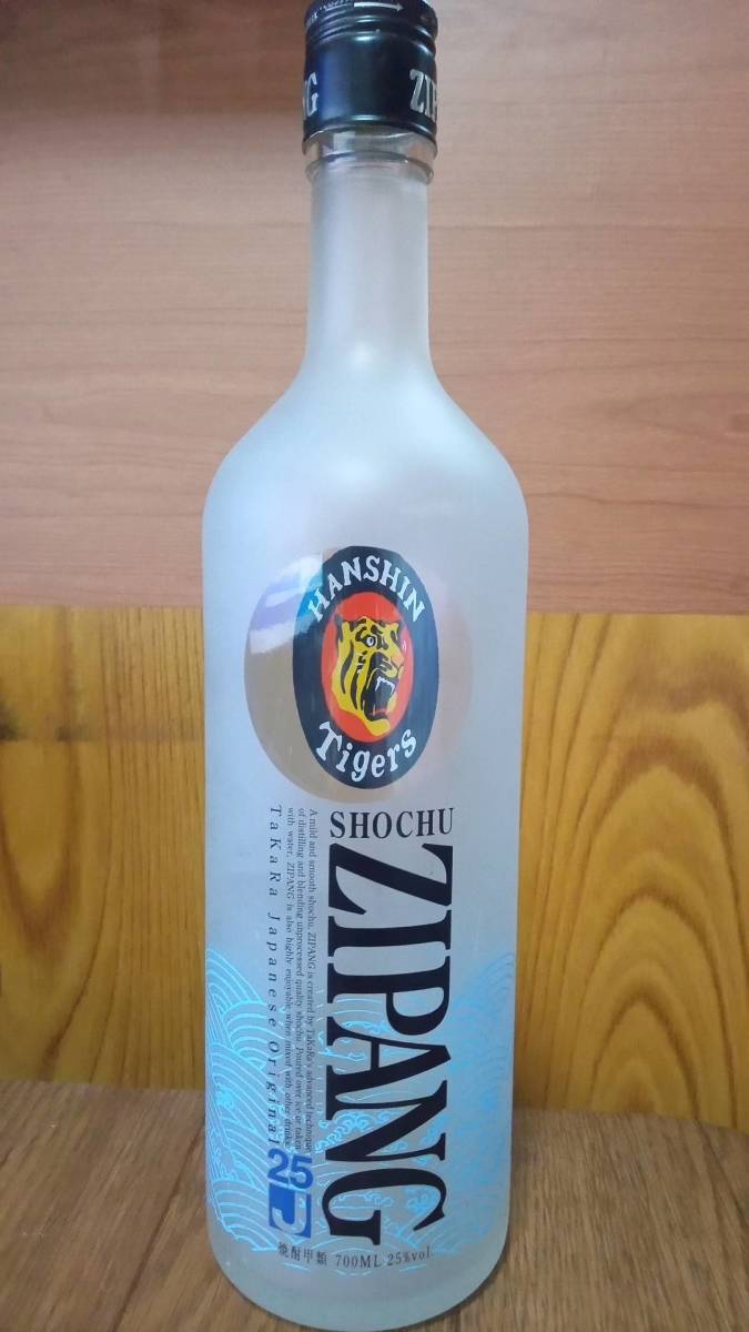 室内保管品です。宝 ZIPANG 焼酎の空き瓶です。阪神タイガースのロゴが付いてます。 焼酎など、入れて使う時は漂白掃除等してお使いください。今は手に入らない品です。