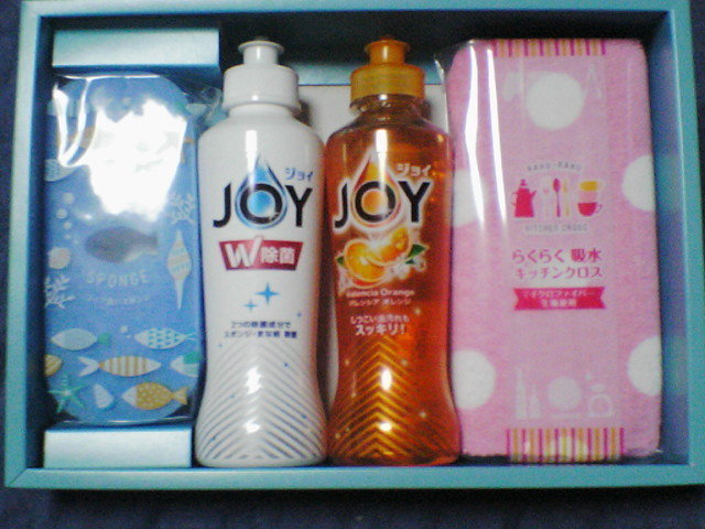 内容物 除菌ジョイコンパクト(175mL).、ジョイコンパクトオレンジ(190mL)、コップ洗いスポンジ、らくらく吸水キッチンクロス