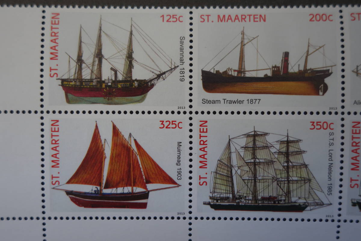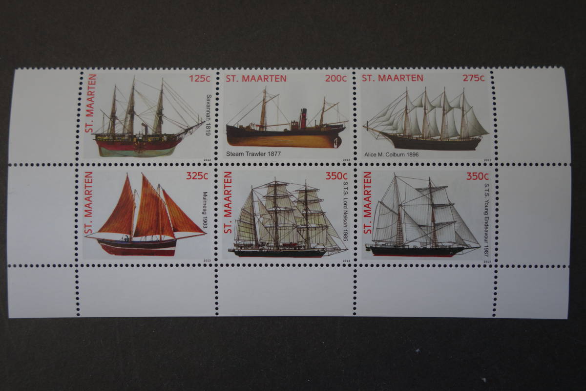 シント・マールテン  2013年発行  「帆船」 6種連刷 未使用、NH(ヒンジ跡無)、糊付です。
