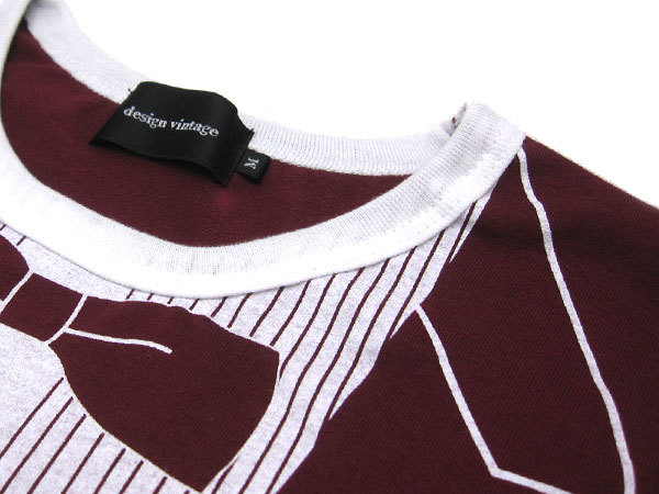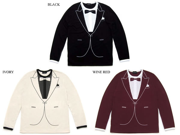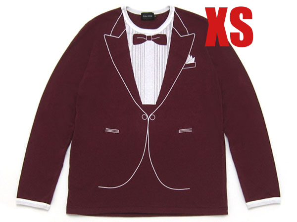 だまし絵 タキシード L/S T-shirt WINE RED XS/ロンt長袖長そで騙し絵tシャツトロンプルイユコスチュームスーツボウタイ面白trompe-l'oei