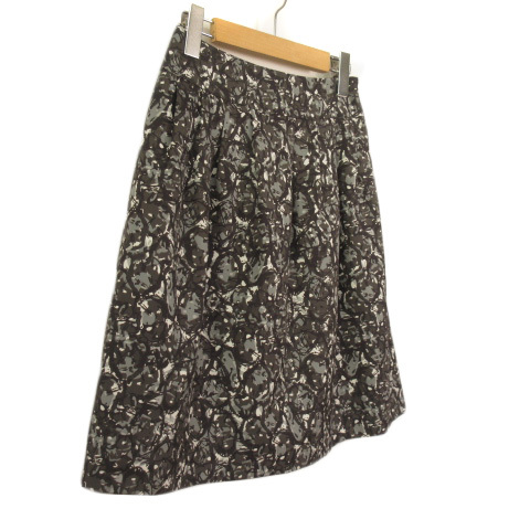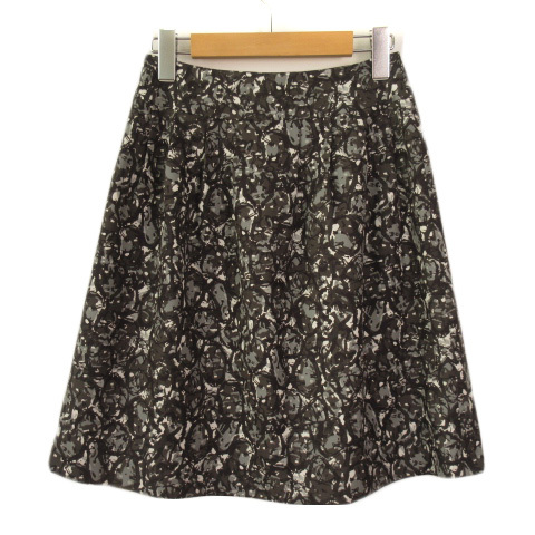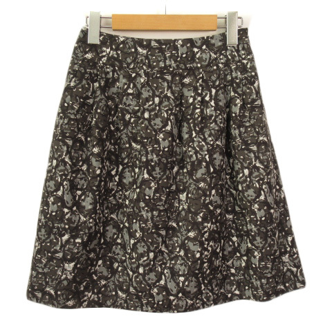 グリーンレーベルリラクシング ユナイテッドアローズ green label relaxing スカート タック 総柄 36 黒 ブラック レディース