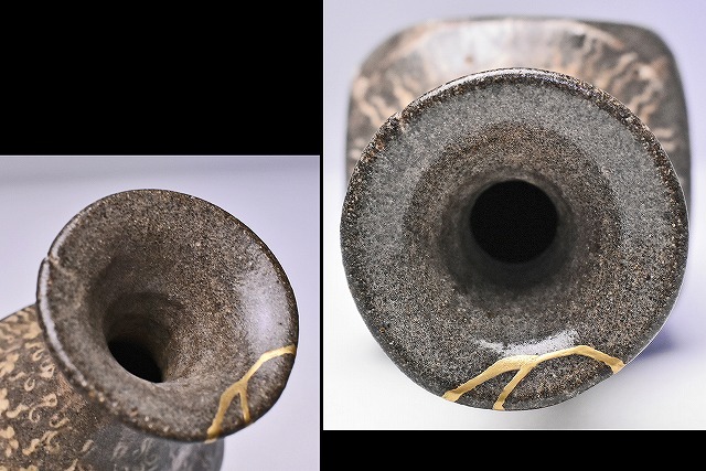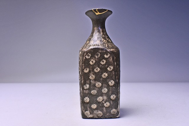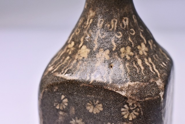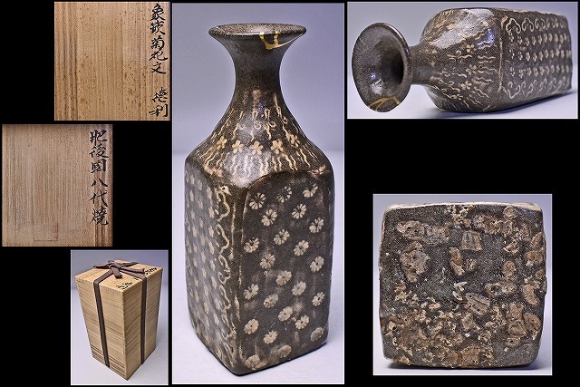 肥後國 八代焼 ★ 象嵌 菊花文 徳利 ★ 木箱 ★ 時代のありそうな古格溢れる逸品 ★ 九州 ★ 金直し ★ 古陶磁