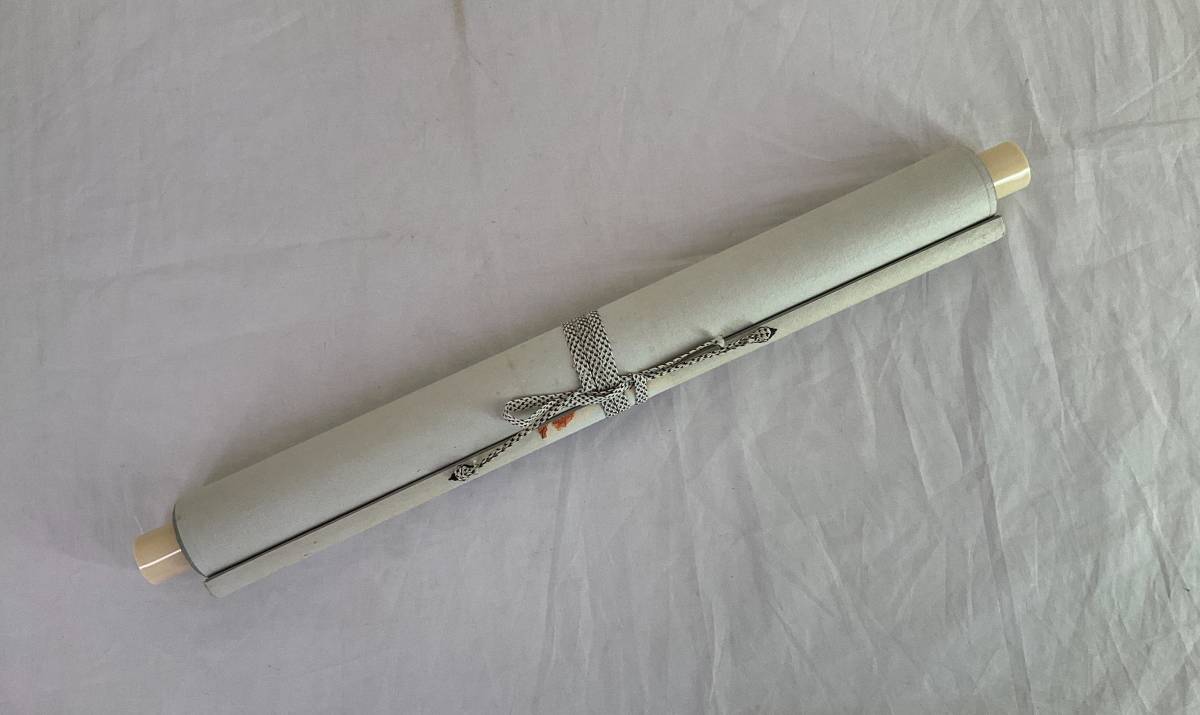 古い掛け軸は軸先を固定している接着剤が弱り、輸送途中の衝撃で軸先が外れてしまう場合がございます。
