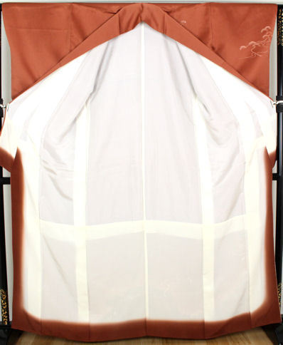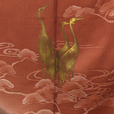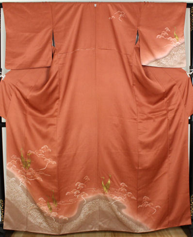 | 訪問着 袷 丹後縮緬地 赤茶・オーク暈し地松に金箔焼き加工鶴 竹屋町刺繍鶴 172 広襟 一つ紋 しつけ付き | |