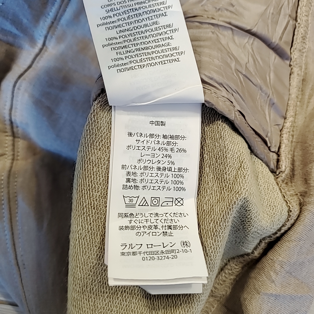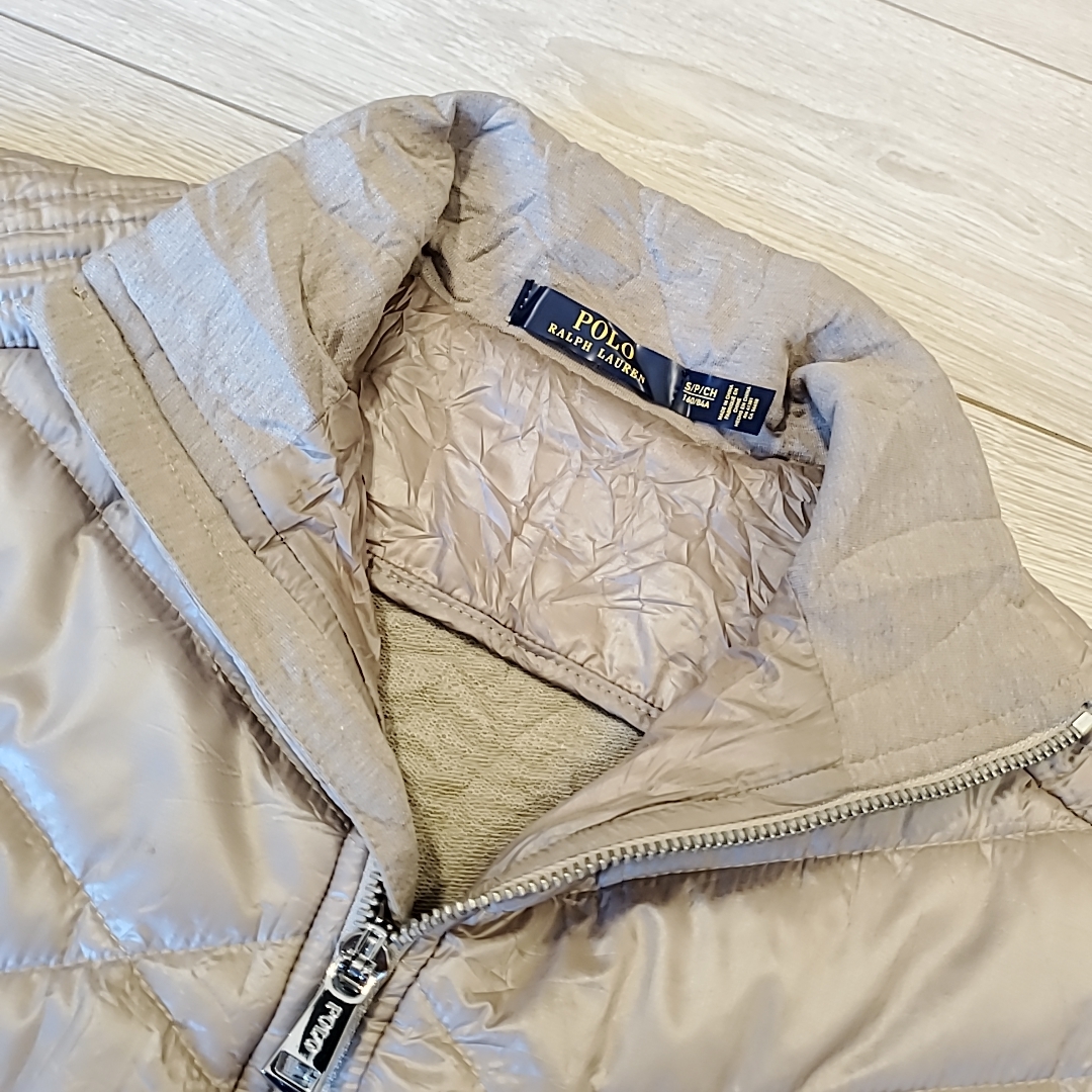 S583 POLO RALPH LAUREN ポロ ジャケット S キルティング キルト アウター ベージュ系 長袖 ロゴ パーカー 中綿 ファスナー ポケット