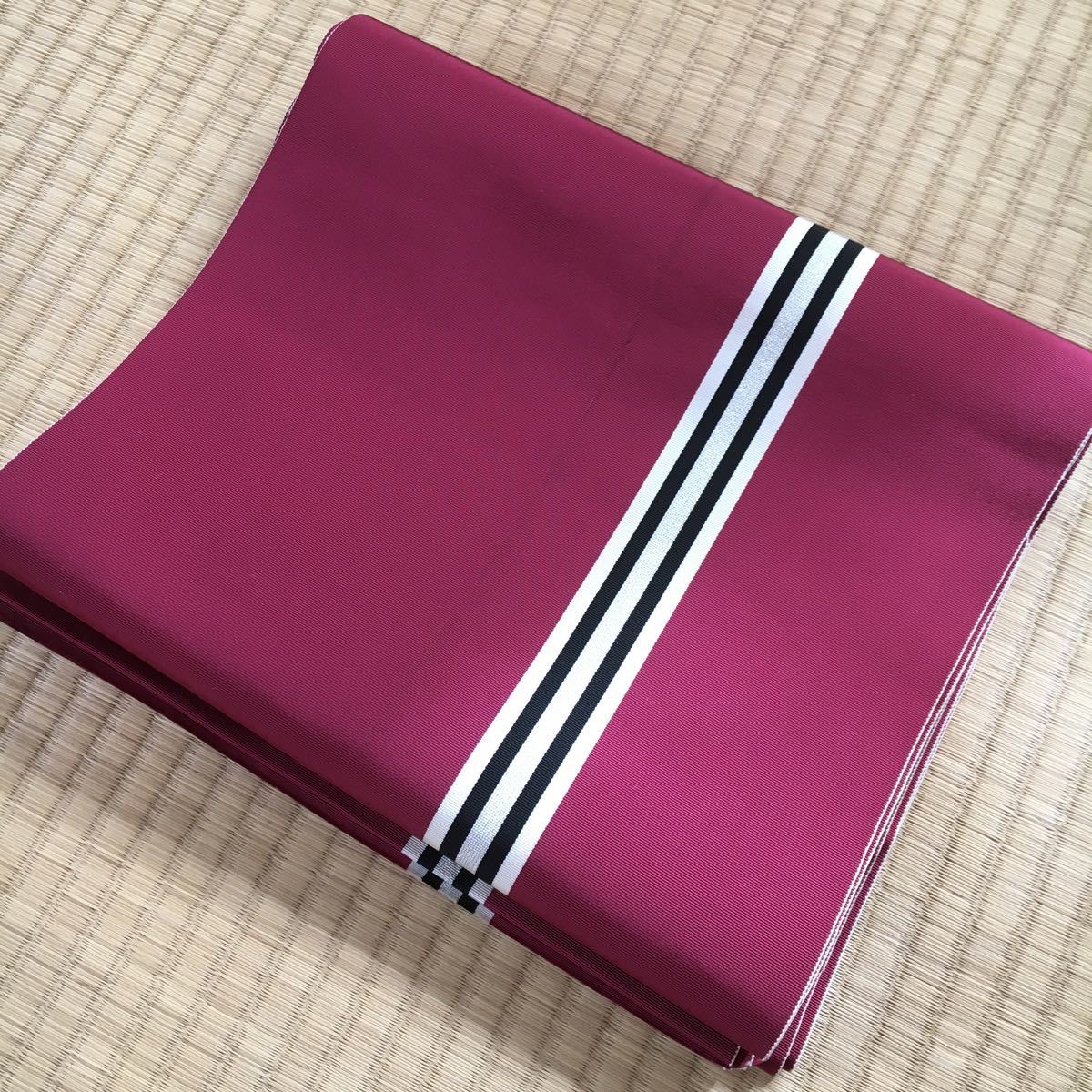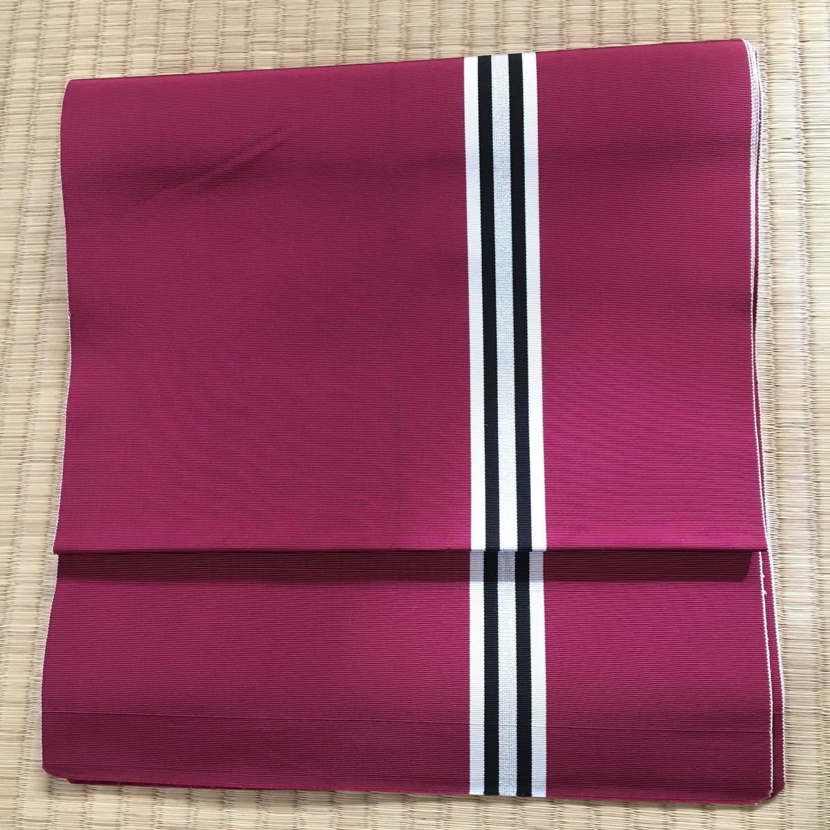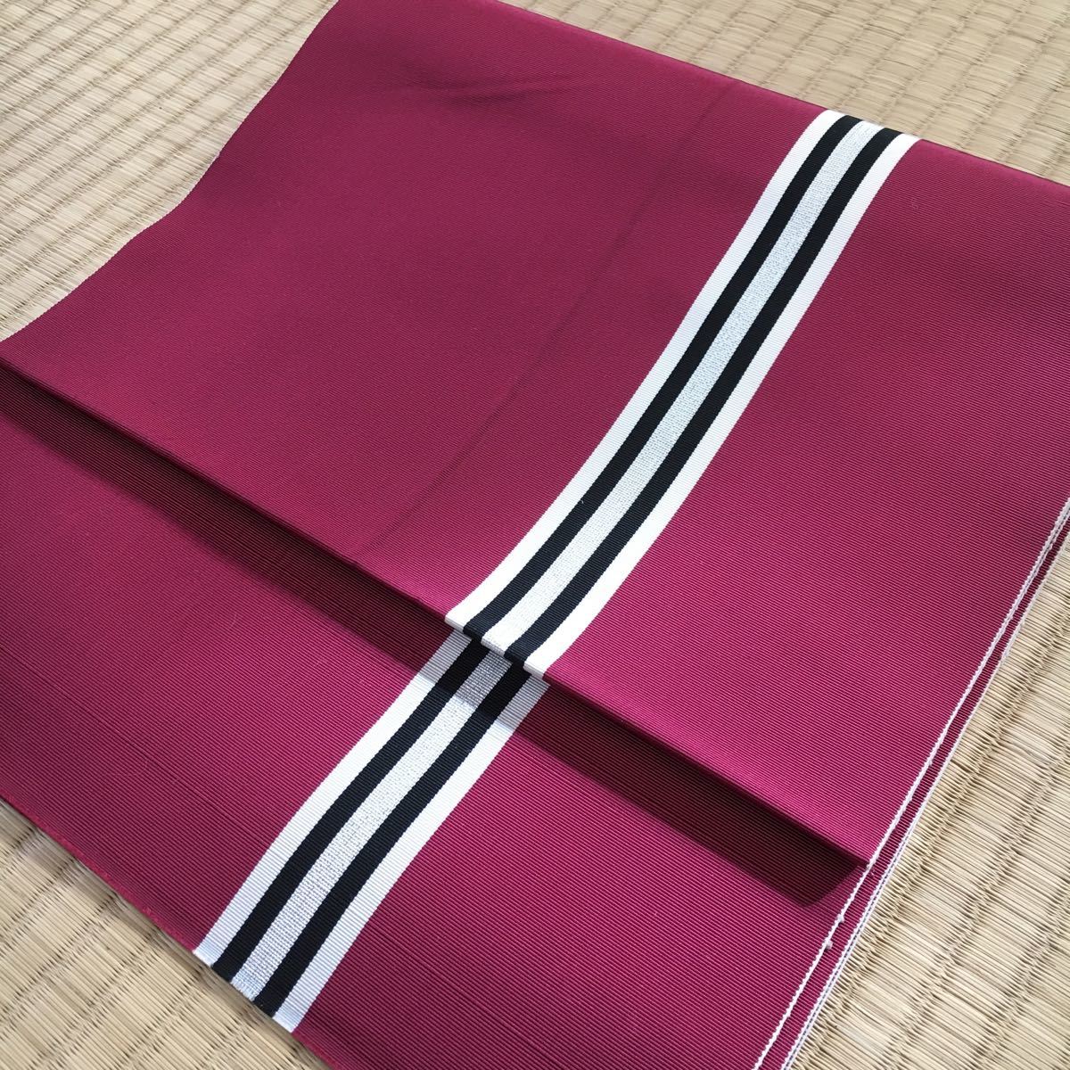名古屋帯 葡萄色 銀 縦縞 ay240