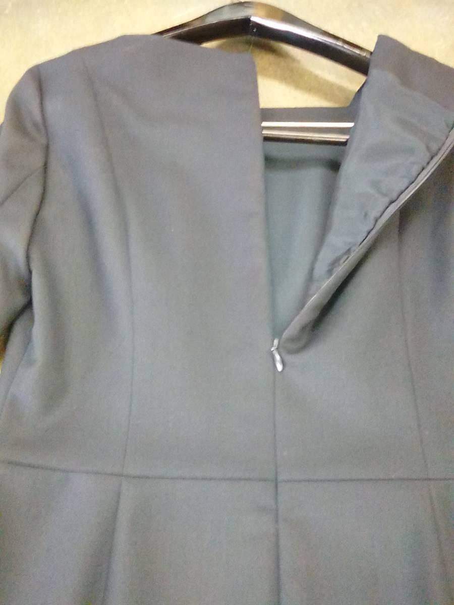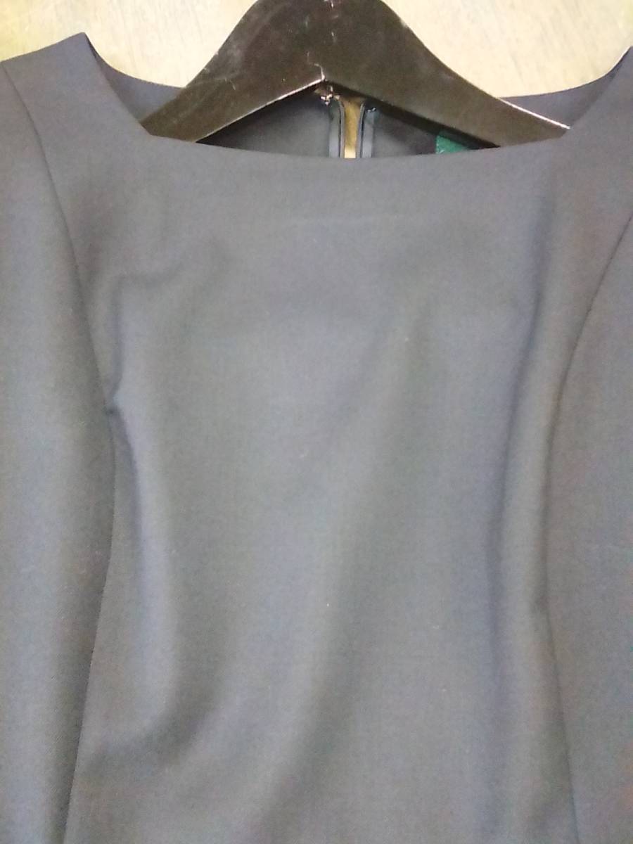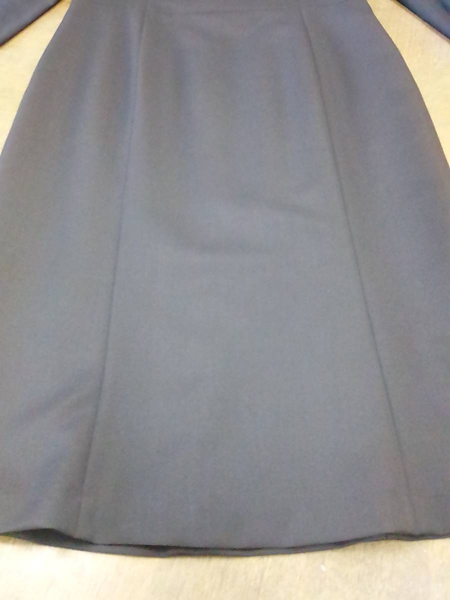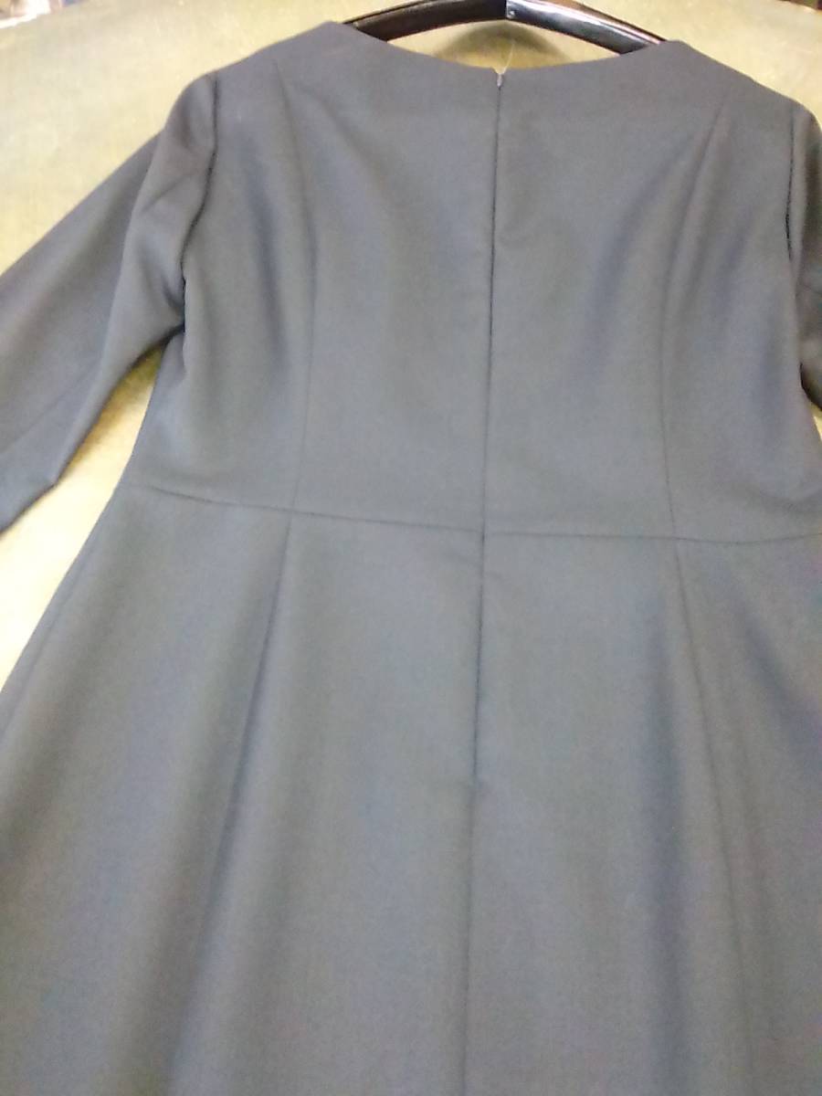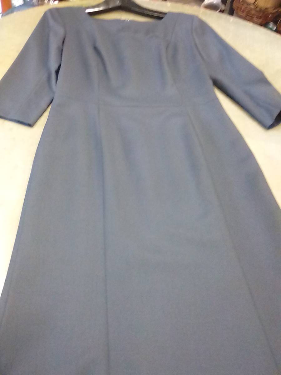 2000年初期の日本製婦人カスタムオ―ダ―用サンプルドレス。9号表示 未使用 ウ―ルサ―ジ紺無地 袖丈(脇の下)約31cm 着丈約100cm 肩幅約39cm ウエスト約38cm 。ご不明な点は遠慮なくお問い合わせ下さい。