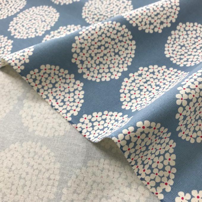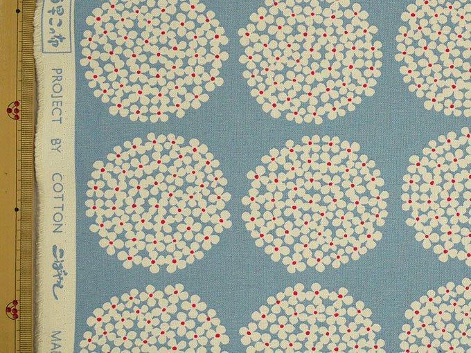 【生地】サークルフラワー・ブルー×白花・綿 100%・110cm巾×1M