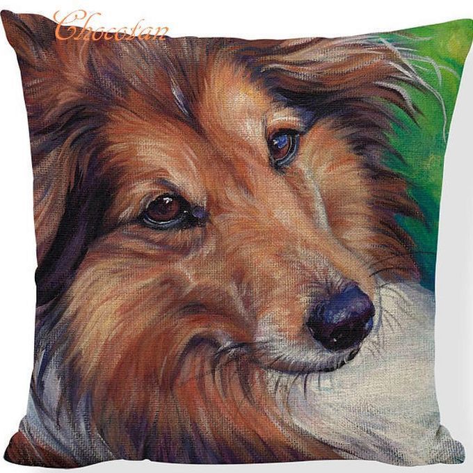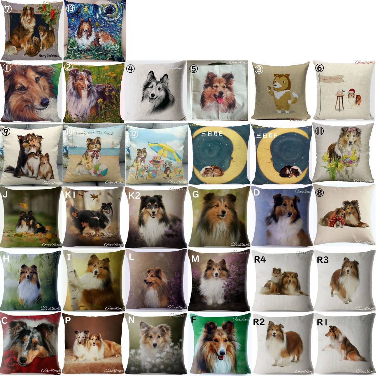 【送料無料】油絵 ① シェルティ クッションカバー【新品】
