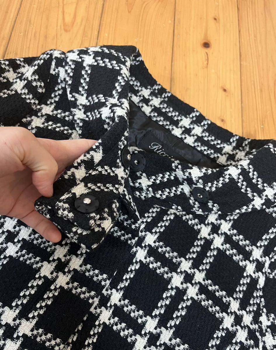 コーデに取り入れやすい白黒の千鳥柄で、ボートネックからニットを覗かせて可愛くお召しいただけます。マフラーやショールも合わせやすいデザイン◎