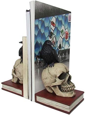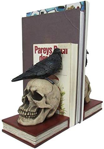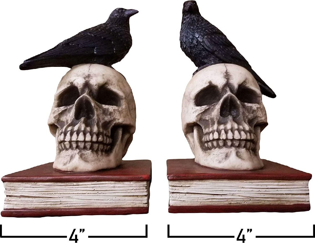 【DWK - Murder and Mystery - Ravens on Skulls Bookends Gothic Poe CrowReading Bookshelf Them for Your Library Home Decor Book Shelf Accent 8.5Inches in Length】