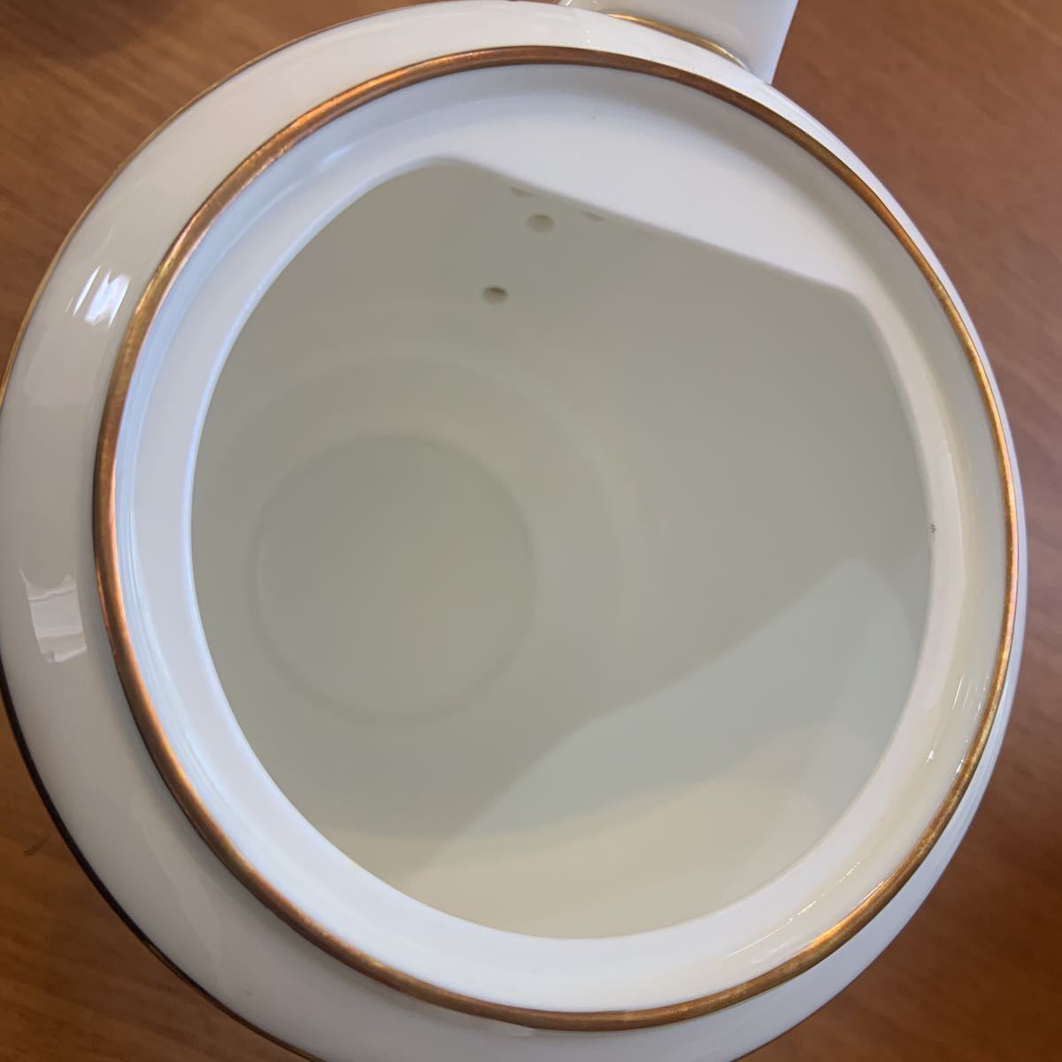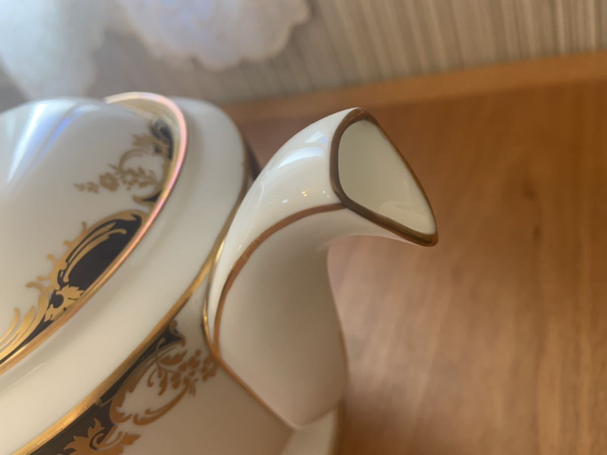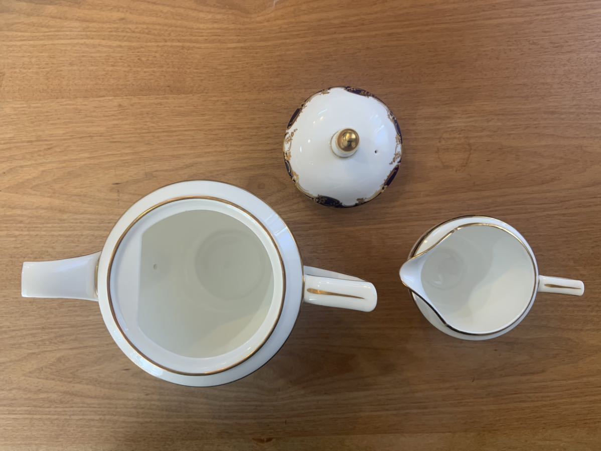 2個とも未使用保管品になりますが、ティーポットは写真7枚目の部分に経年による金彩の変色がみられます。写真にてご確認ください。