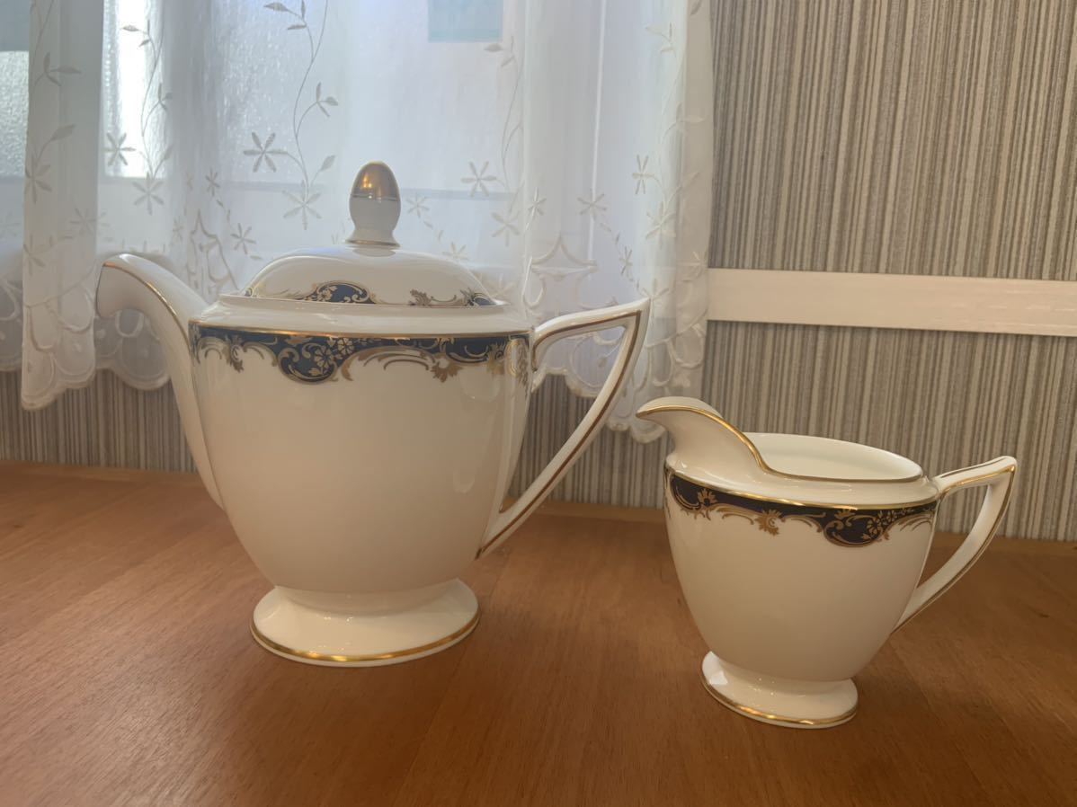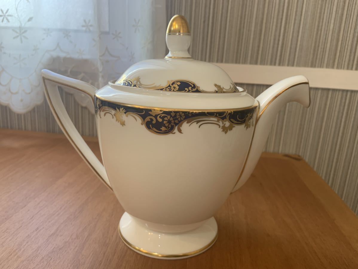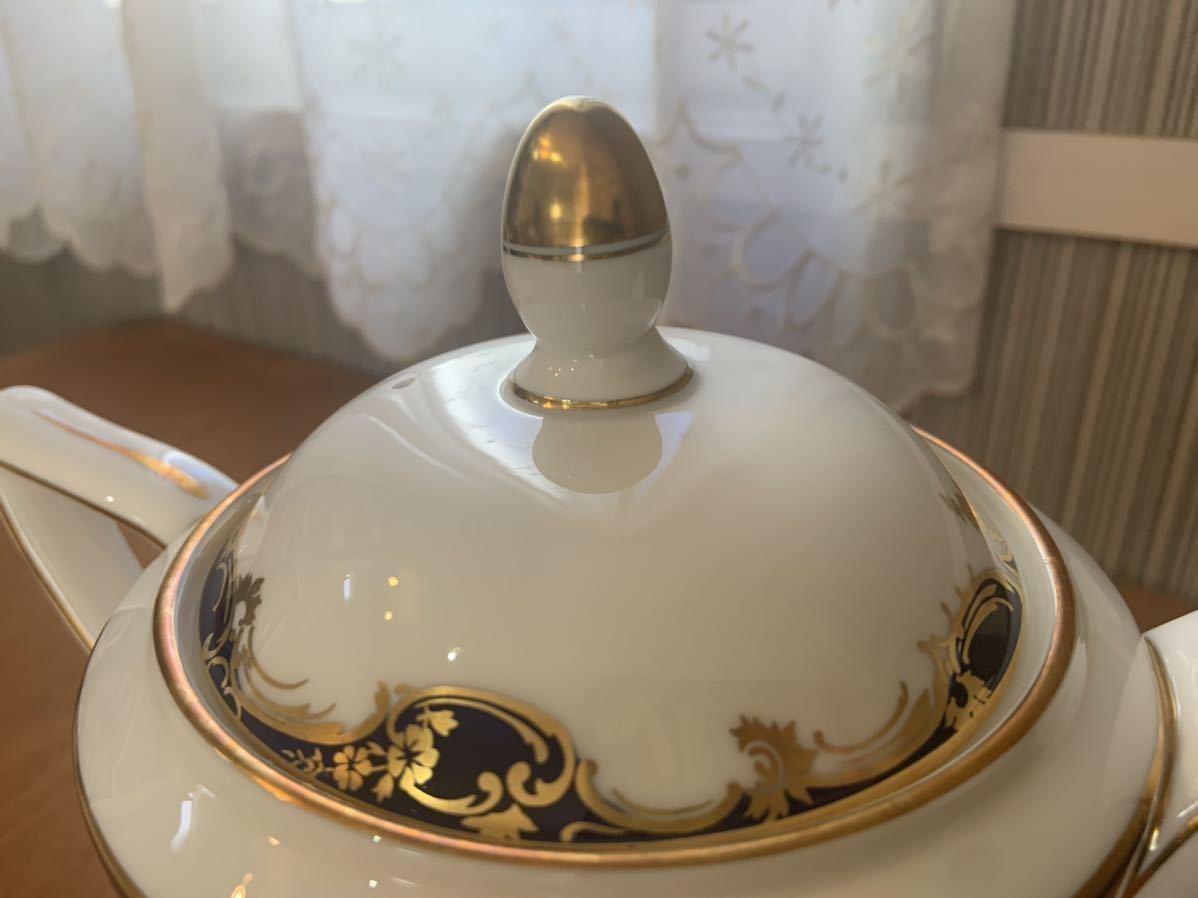 2個とも未使用保管品になりますが、ティーポットは写真7枚目の部分に経年による金彩の変色がみられます。写真にてご確認ください。