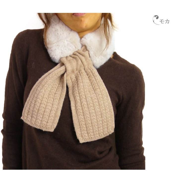 ショール ニット&ボア レディース 無地 マフラー ネックウォーマー 新品 メール便送料無料 モカ