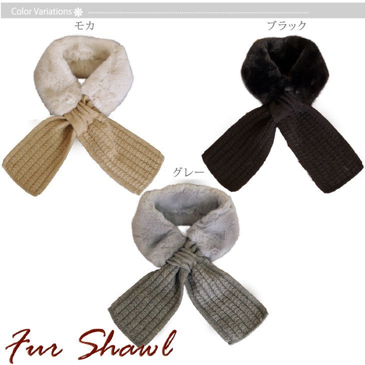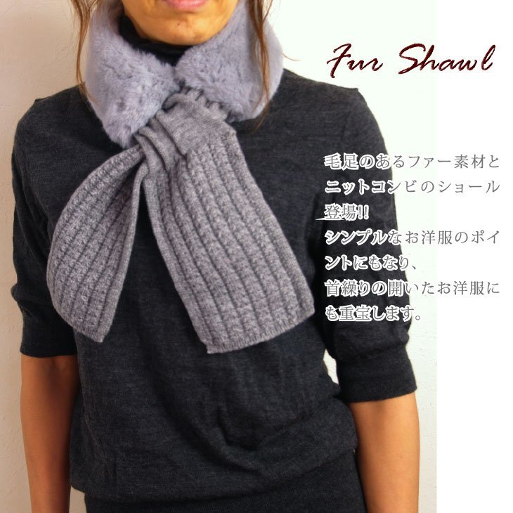 ★毛足のあるファー素材とニットコンビのショール登場!!