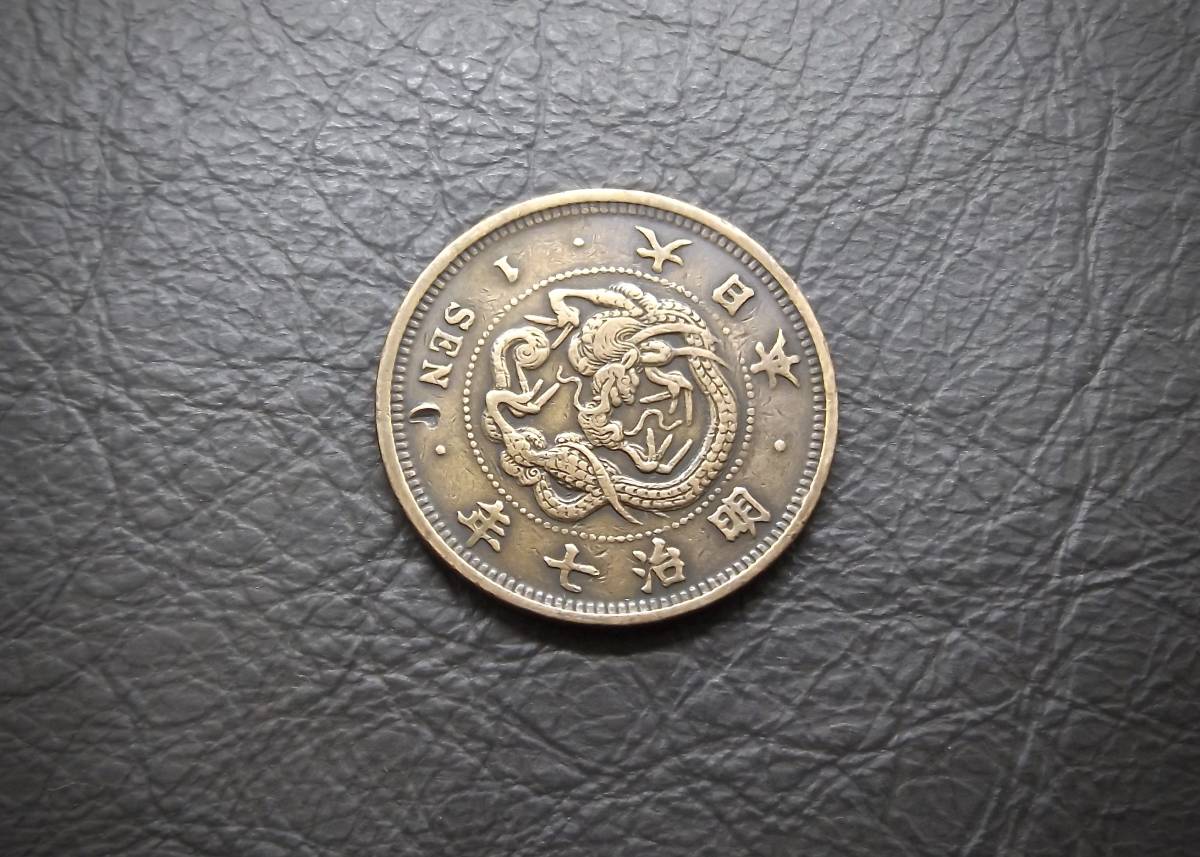明治7年 竜1銭青銅貨 送料無料 (15121)古銭 骨董 アンティーク 日本 貨幣 菊の紋章 お宝