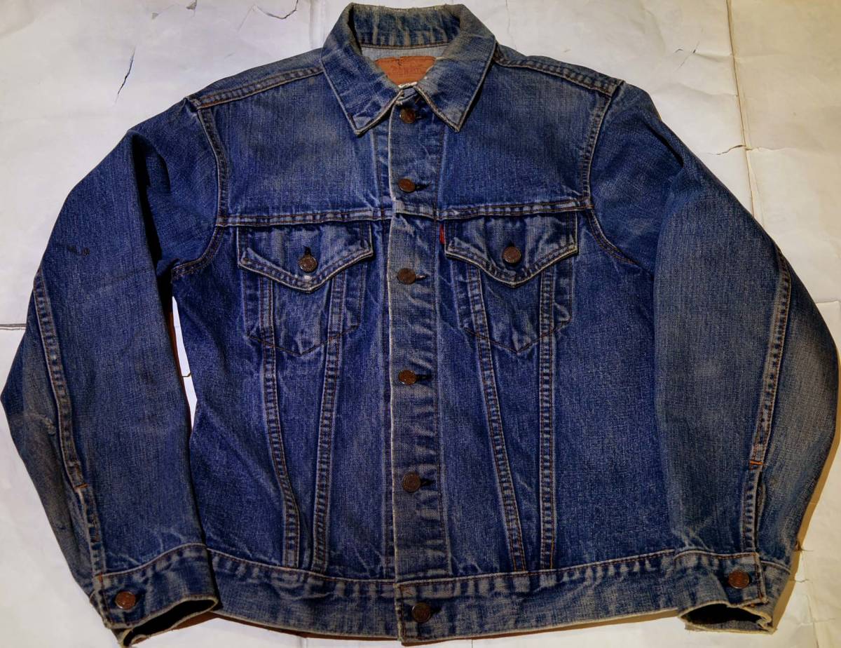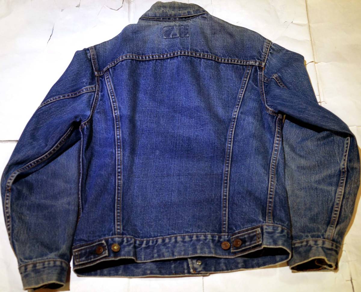 60'sの70505ビッグEです。復刻、レプリカではありません。『ディテール紹介』ボタン裏の刻印521、赤タブビッグE。『状態』リペア=襟、第三ボタンホール。 その他=スレ、キズなどUSED感があります。『色落ち、特徴など』色落ちは抜群いかっこよく、ビッグE特有の非常に深みのあるインディゴで、 全体に綺麗な縦落ちも見られます。綺麗目スタイルでもこれを羽織るだけで ヴィンテージっぽい着こなしになると思います。まだ程よくインディゴが残っており、 ヴィンテージ感は抜群です。普通体形の方がジャストで着用いただける人気サイズです。