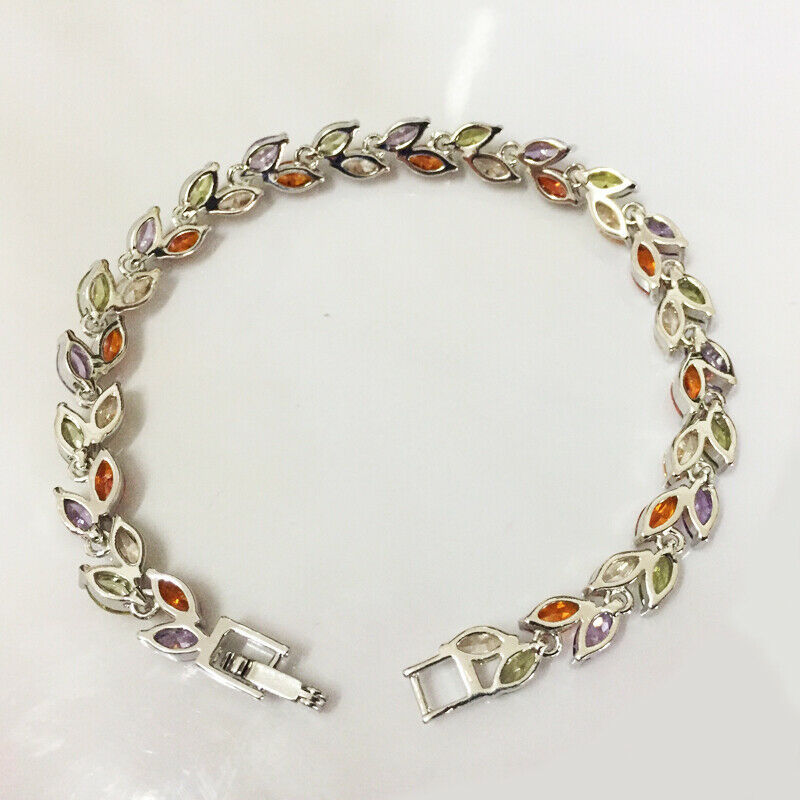 アメジスト  金属部分は銀色です。お届けに2週間以上かかります。 モナ・リザ・アメジスト・ペリドット・ガーネット 宝石ブレスレット