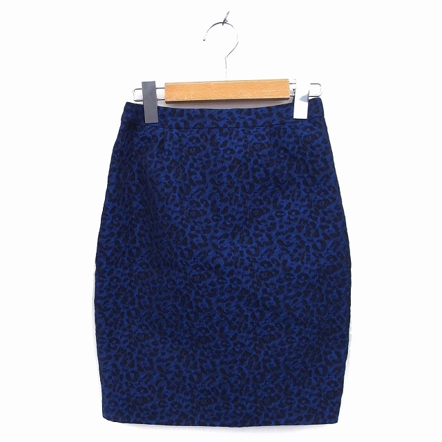チェスティ Chesty スカート タイト ひざ丈 バックジップ スリット ヒョウ柄 レオパード柄 0 青 ブルー /NT8 レディース