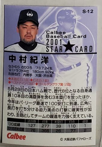 ★☆カルビー 2001 スターカード 中村紀洋(近鉄) #S-12☆★ | |