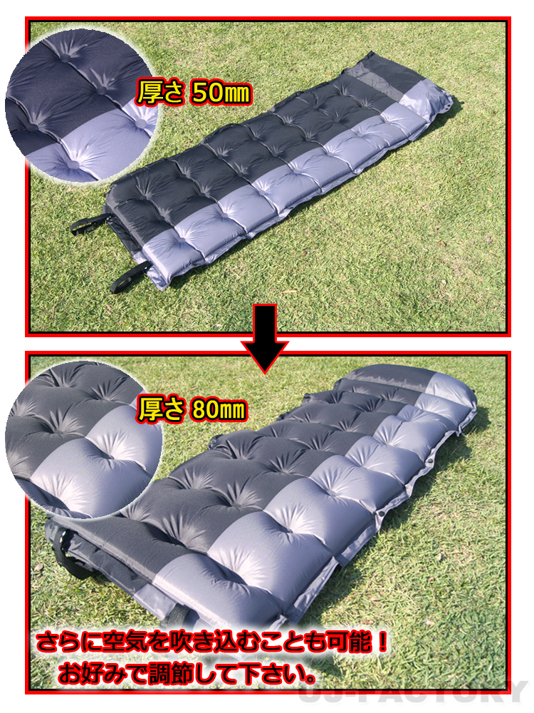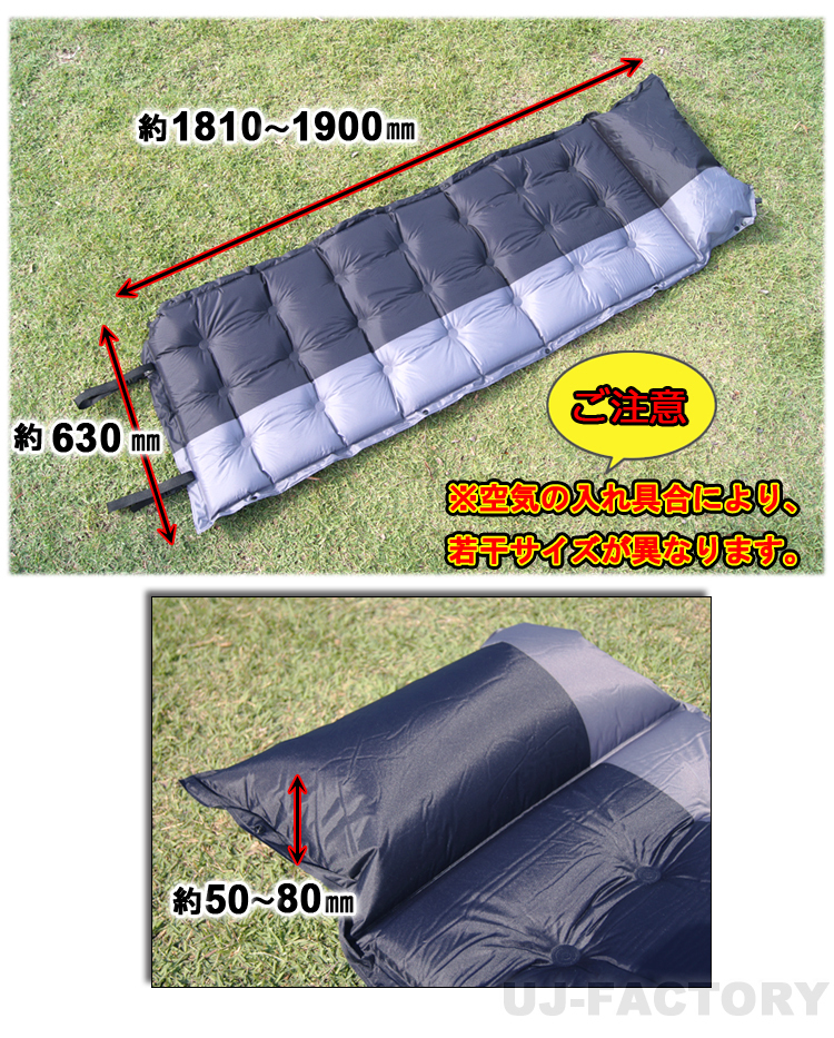 | ★ 自動膨張式・枕+エアーマット ★ ♪ アウトドアライフを更に楽しく ♪ ★1900mm×630mm×50mm/連結可能で広々★ | |||||||||||||||||||||