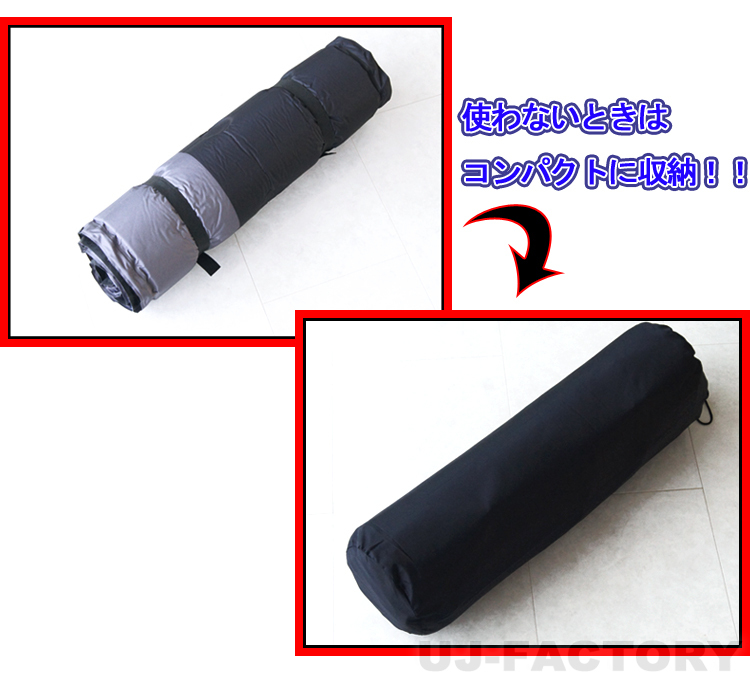 | 【 ここがポイント 】 ★高級感があり落ち着きのあるシックなカラー「ブラック&グレー」♪キャンプやピクニック、登山や車中泊と色んな場所で使用可能!もちろんあってほしくありませんが、災害の時もお役立ちグッズです。 ★空気取り入れバルブを開けることで自動的に膨張が始まります。バルブを開いて約5分自動膨張式で手間要らず!1900mm×630mmと十分な広さ♪厚みも約50mmあり「ふかふか」で快適です。 ★この【L】は枕部分も自動膨張式です。 ★マットは複数の連結も可能で、家族やグループでワイワイ広々と使えます。 ※このオークションは、タイトルに表記のサイズ及び数量です。