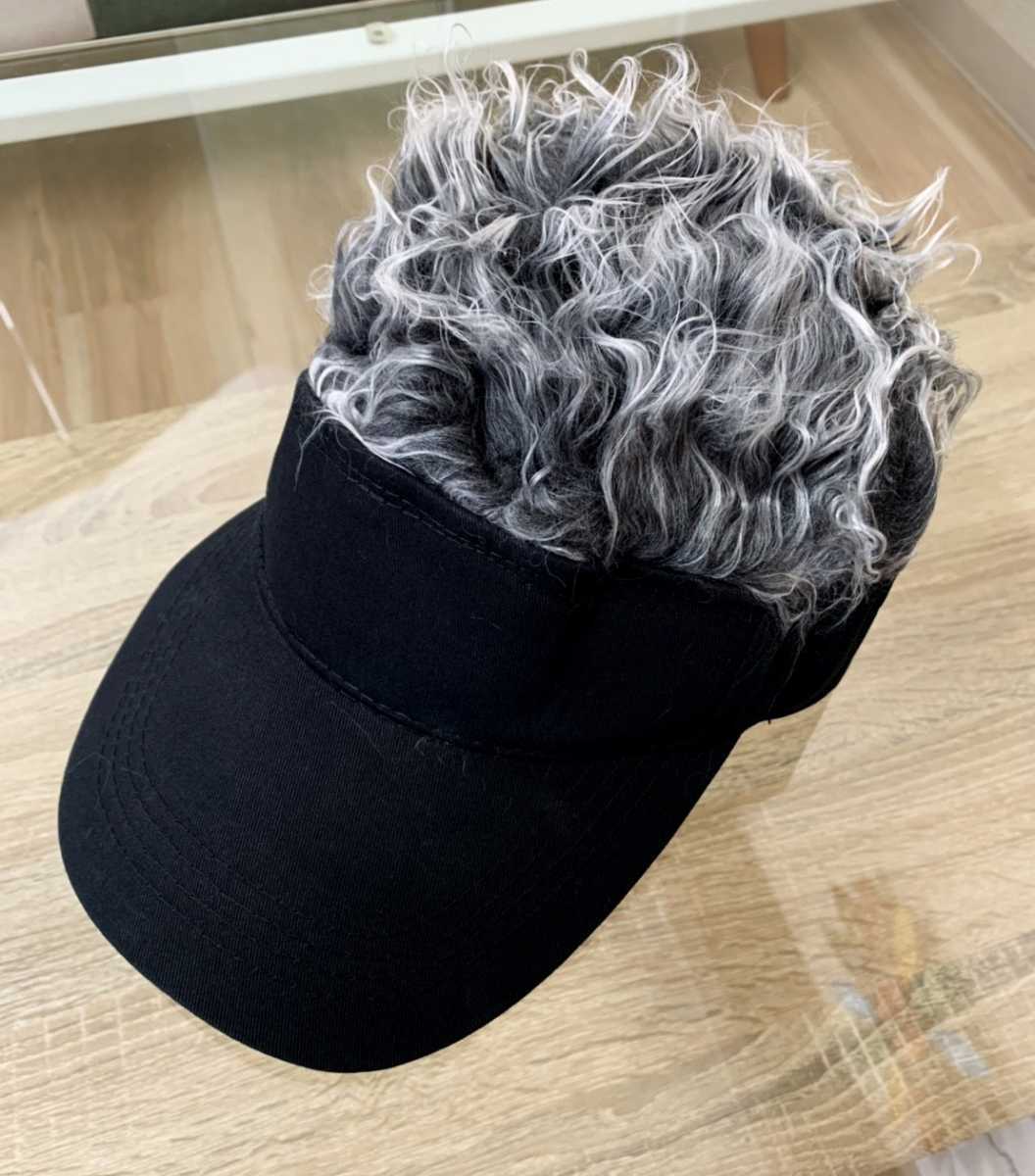 ウケること間違いなしの「ヘア付きバイザー」の登場です。